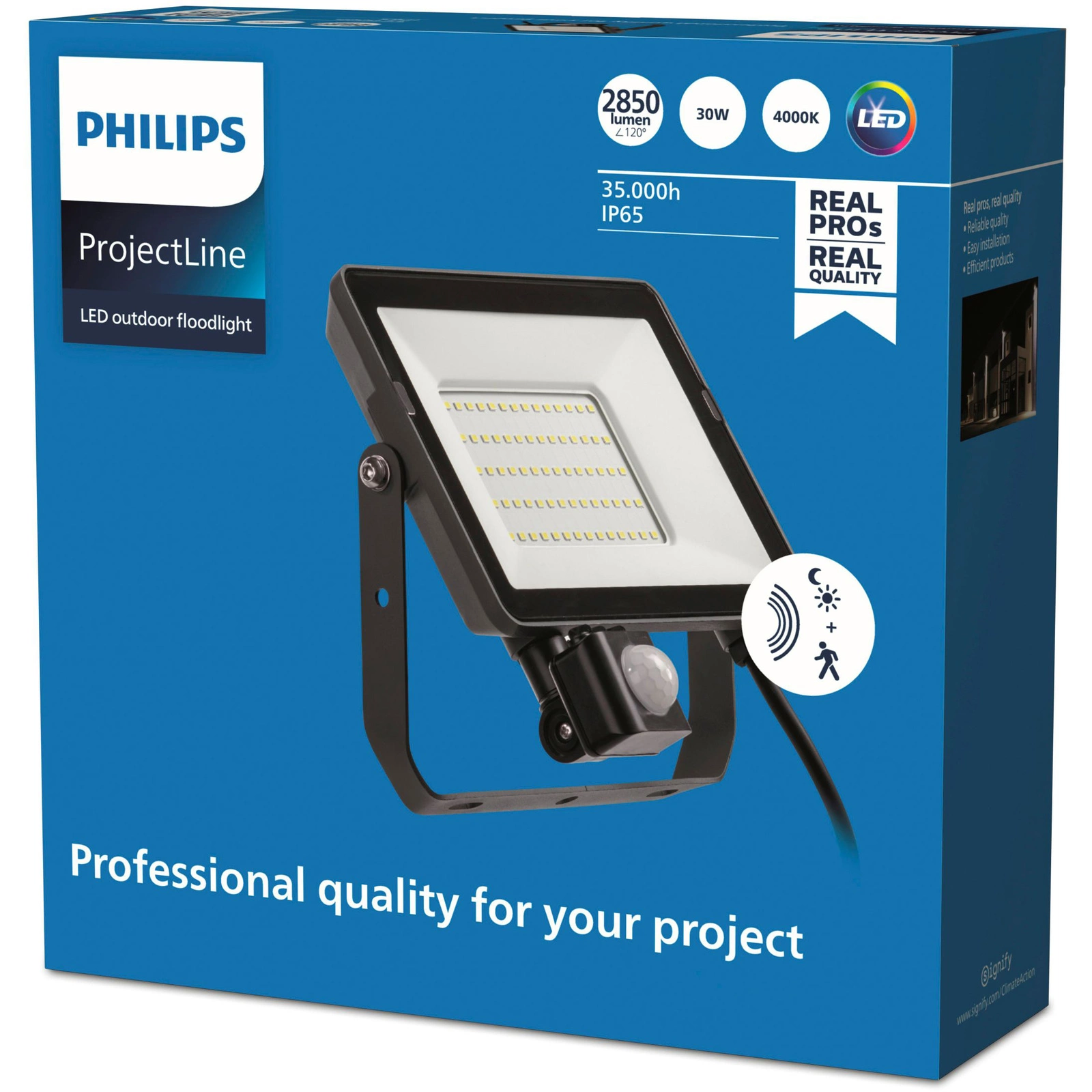 LED Fluter 30W 2850lm 4000K IP65 Schwarz mit Bewegungs- und Dämmerungssensor ProjectLine Fluter PHILIPS