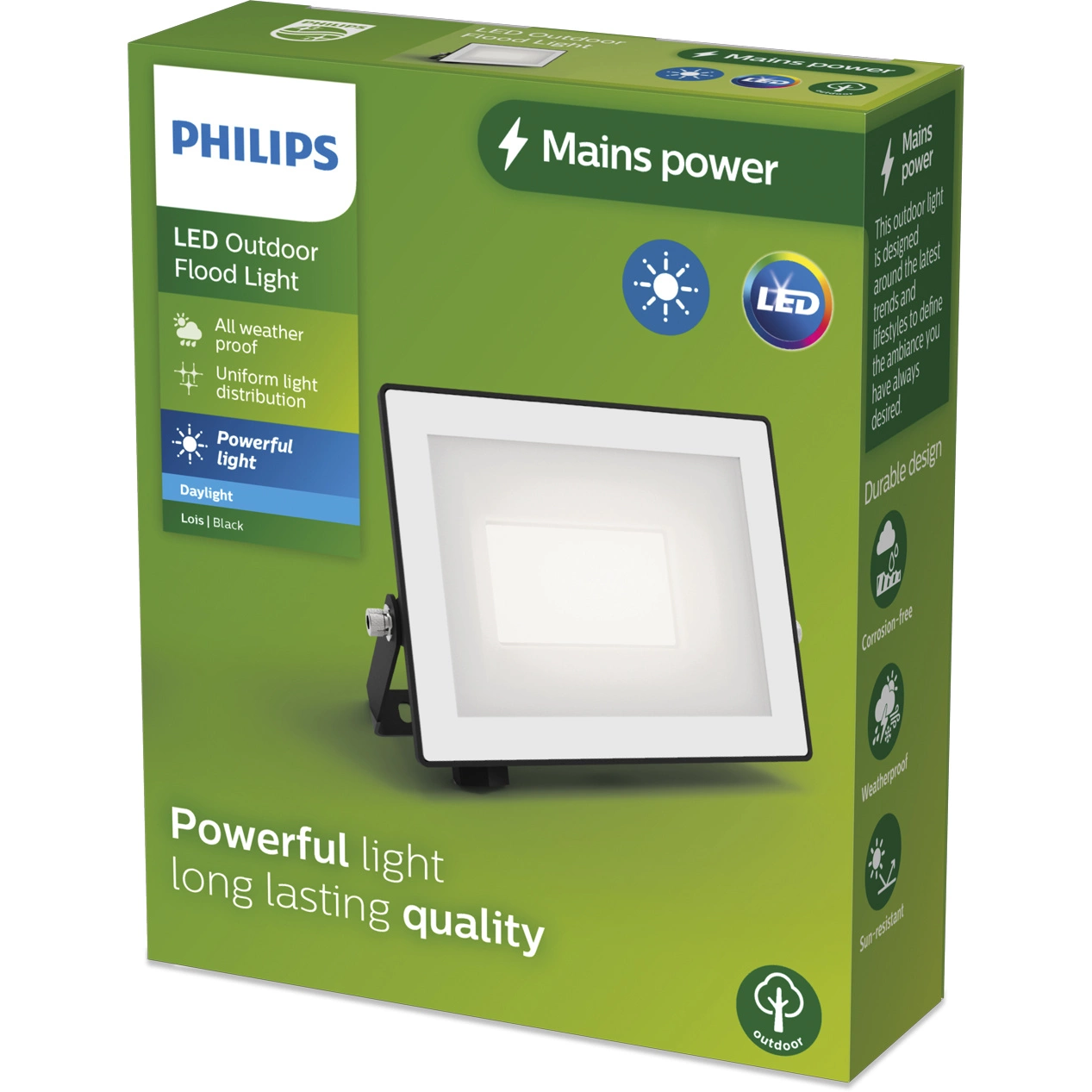 Der Philips LED-Flutlichtstrahler strahlt eine neutrale Lichtfarbe von 5000K aus, die dem natürlichen Tageslicht perfekt nachempfunden ist. Er ist ideal für die Beleuchtung von Außenbereichen, in denen Klarheit, gute Sicht und Komfort für die Augen gefragt sind. Dank seines neutralen Farbtons ist das 5000K-Licht weder zu warm noch zu kalt - es bietet einen natürlichen und klaren Effekt, der auf Einfahrten, Wegen, Terrassen und Arbeitsplätzen gleichermaßen gut funktioniert.