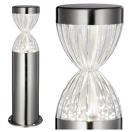 Die Steh-Gartenleuchte ADRIA von Polux ist eine niedrige LED-Leuchte aus hochwertigem Stahl mit Kunststoffzusatz, mit einem originellen und sehr modernen Aussehen. Eine einzigartige Röhre mit einem sanduhrförmigen Lampenschirm aus Kunststoff. Das Produkt eignet sich perfekt für die Außenbeleuchtung. Dies ist eine praktische und elegante Lösung, insbesondere für: