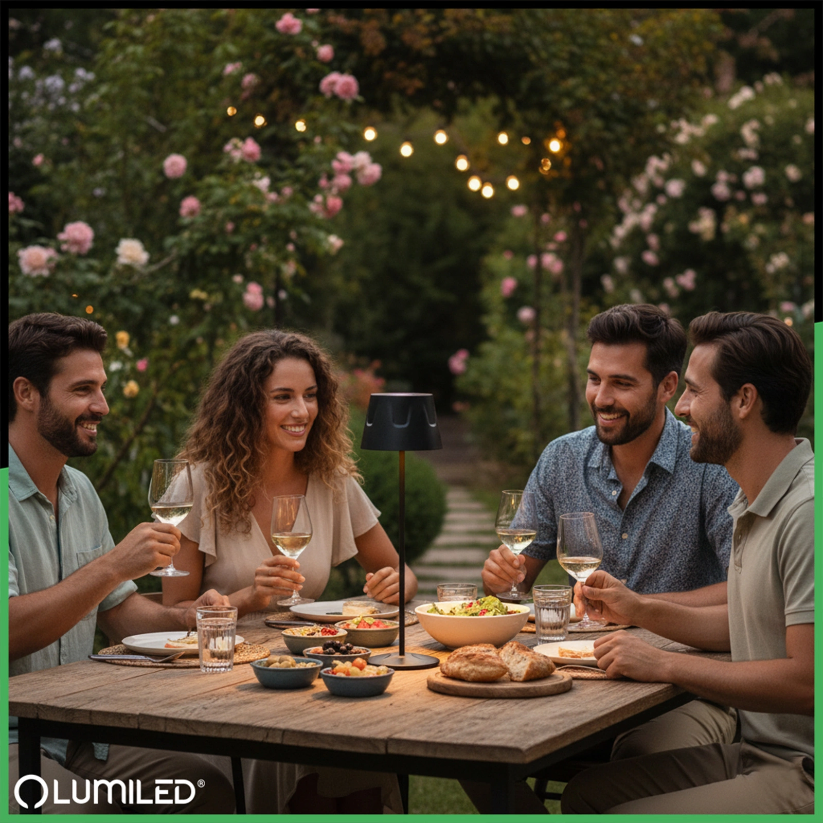 Die Leuchte FIORA von Lumiled ist eine funktionale und elegante Leuchte, die überall dort zum Einsatz kommt, wo Mobilität, Platzersparnis und schnelle Ergebnisse wichtig sind. Dank ihrer kompakten Abmessungen können Sie sie einfach auf einem Tisch, einer Fensterbank oder einer Terrasse aufstellen - ohne Montage oder Zugang zu einer Steckdose. Sie ist ideal für entspannte Abende, romantische Abendessen oder Gartentreffen - stilvoll, langlebig und überall einsatzbereit, wo Sie sie brauchen.
