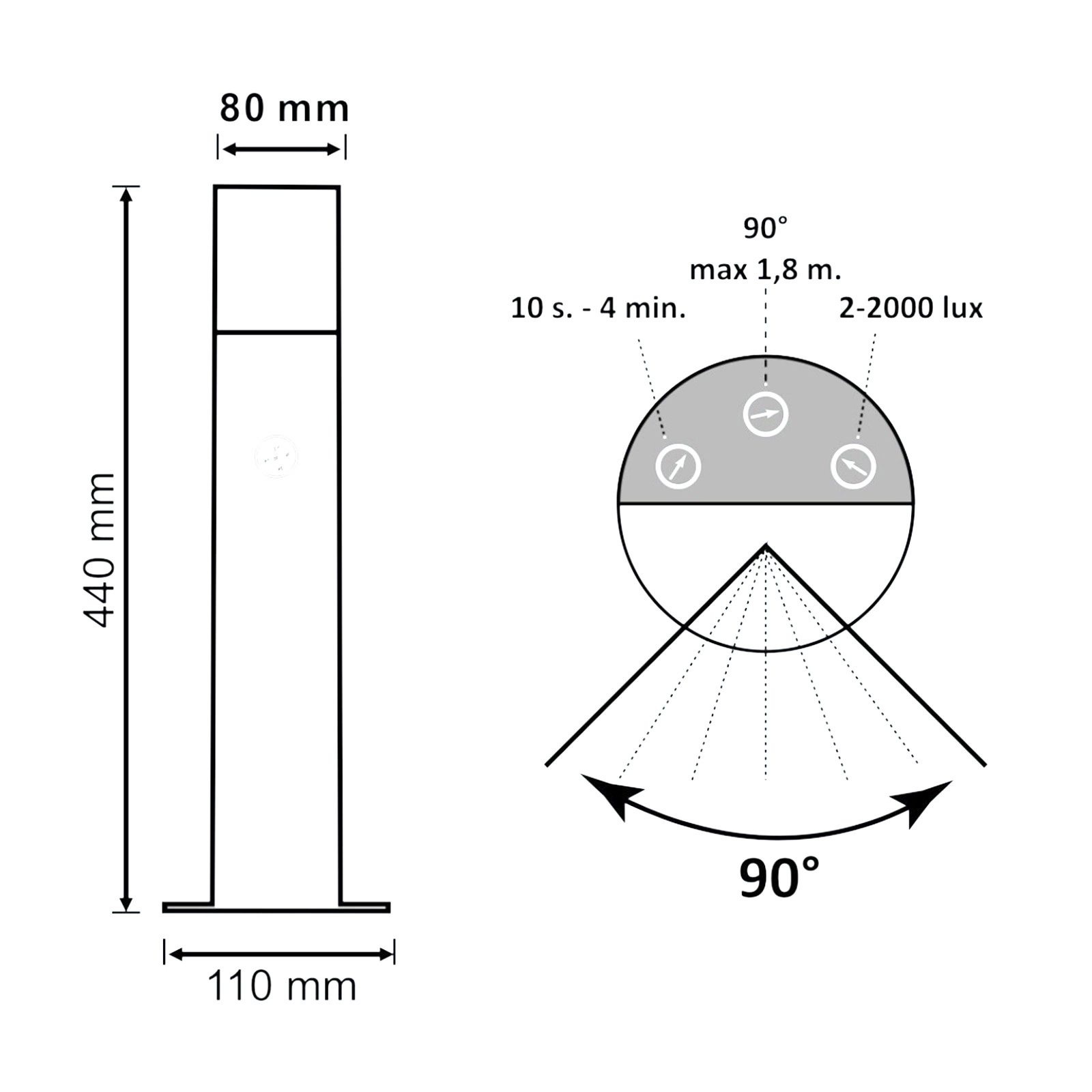 - Einstellung des Dämmerungssensors von 2 bis 2000lux