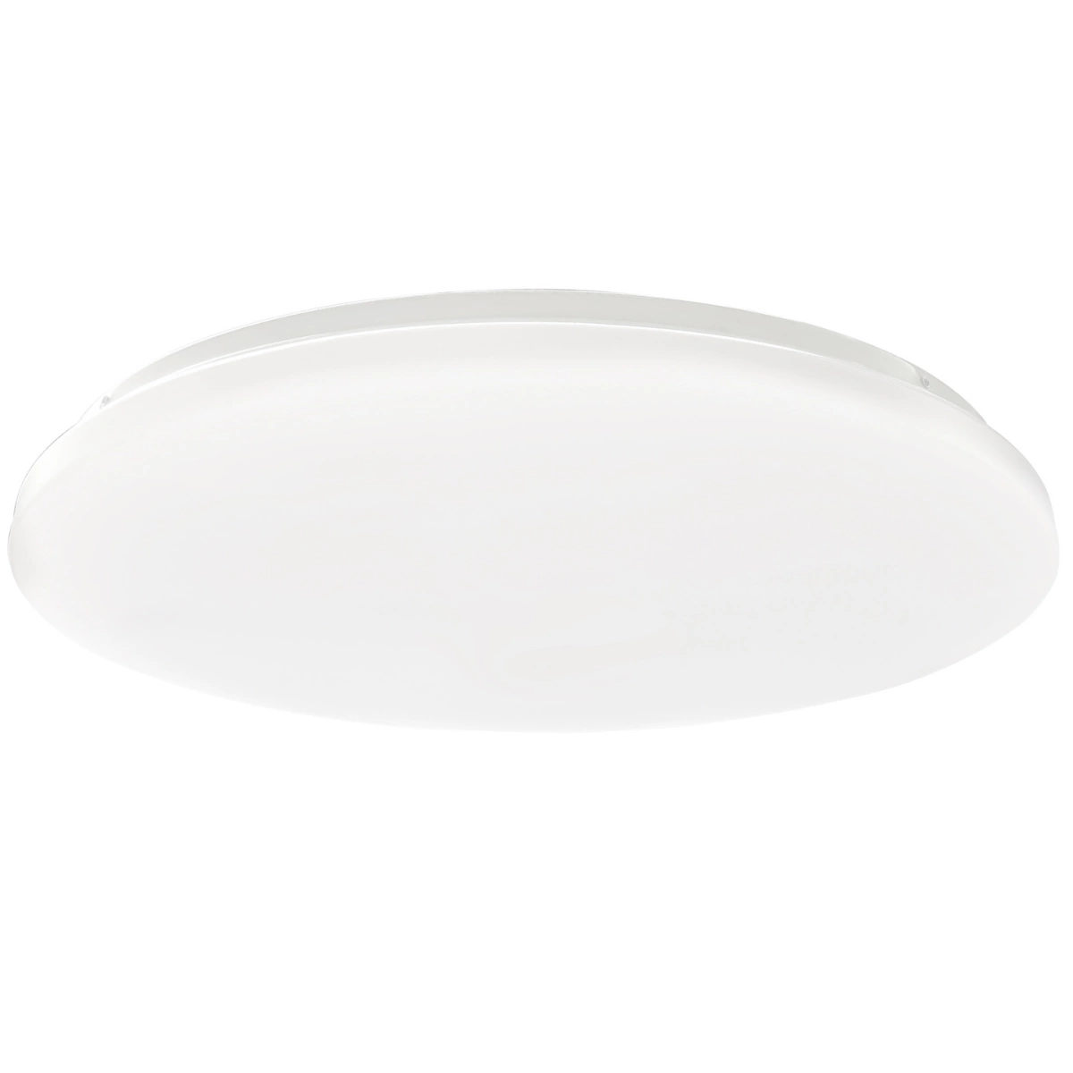 Eine moderne LED-Deckenleuchte mit einem Durchmesser von 50 cm, der HAMPTON- Serie, von POLUX , in Weiß , mit einer hocheffizienten, energiesparenden LED- Lichtquelle mit max. Leistung 45 W und Lichtstrom 4700 lm. Die Lampe ist mit LED-Dioden ausgestattet , die sanfte Reflexionen erzeugen und für ein gleichmäßig gestreutes Licht sorgen, wodurch der negative Effekt der Blendung beseitigt wird.