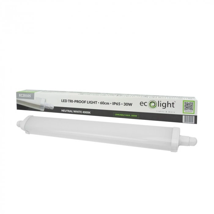 Entdecken Sie die perfekte Beleuchtungslösung mit der linearen hermetischen LED-Lampe von ECO LIGHT. Diese hochmoderne Leuchte bietet beeindruckende 30W und erzeugt einen Lichtstrom von 3.300 lm und verwandelt so jedes Interieur in einen perfekt beleuchteten Raum. Die Lichtfarbe von 4000K sorgt für ein neutrales, angenehmes Licht, das die Konzentration und den Komfort fördert. Das Produkt ist staub- und feuchtigkeitsbeständig, was durch die Schutzart IP65 bestätigt wird, und eignet sich daher sowohl für den Innen- als auch für den Außeneinsatz.