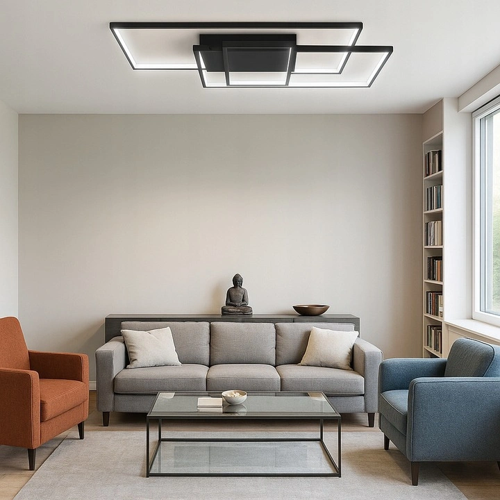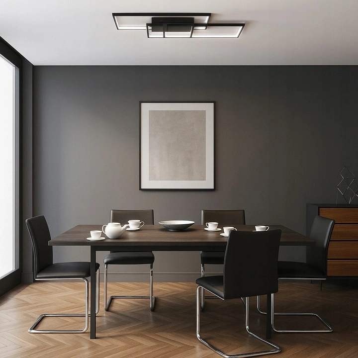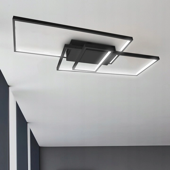 Deckenleuchte - Kronleuchter aus der Galaxis-Serie in Schwarz (RAL 9017) vereint Modernität, interessante Optik und einfache Bedienung. Die Lampe ist mit einer integrierten 90-W-LED-LICHTquelle ausgestattet . Der Vorteil der LED-Lampe ist die Möglichkeit , die Lichtfarbe zu ändern und dimmbar zu sein. Die Lampe kann über eine spezielle Fernbedienung gesteuert werden. Mit der Fernbedienung können wir die Intensität des LICHTS verringern oder erhöhen, seine Farbe von warm auf neutral oder kalt ändern und die Lampe ein- und ausschalten.