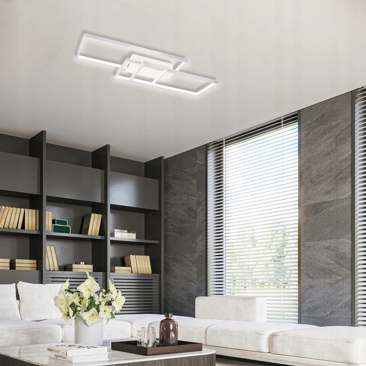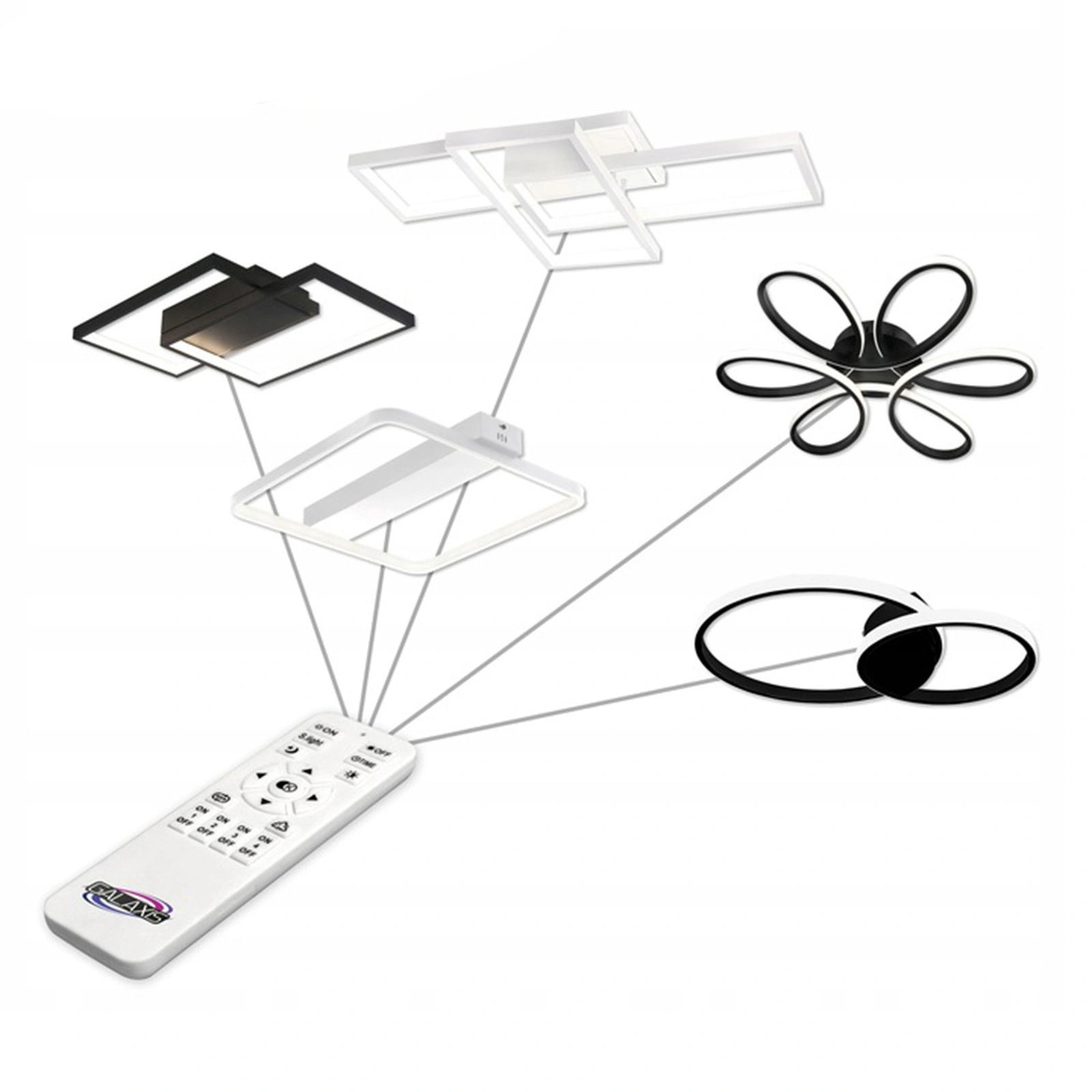 Deckenleuchte - LED-Kronleuchter der Galaxis-Serie in Weiß vereint Modernität, interessantes Aussehen und einfache Bedienung. Die Lampe ist mit einer integrierten 90W LED-Lichtquelle ausgestattet. Der Vorteil der LED-Lampe ist die Möglichkeit, die Lichtfarbe zu ändern und dimmbar zu sein. Die Lampe kann über eine spezielle Fernbedienung gesteuert werden. Mit der Fernbedienung können wir die Lichtintensität reduzieren oder erhöhen, die Farbe von warm auf neutral oder kalt ändern und die Lampe ein- und ausschalten. Das Produkt besteht hauptsächlich aus Aluminium (Gehäuse), Kunststoff (Schirm) und Stahl (Basis). Die Galaxis-Serie zeichnet sich durch ein interessantes Design aus, das sich sowohl an Liebhaber eines modernen als auch eines universelleren Stils richtet.