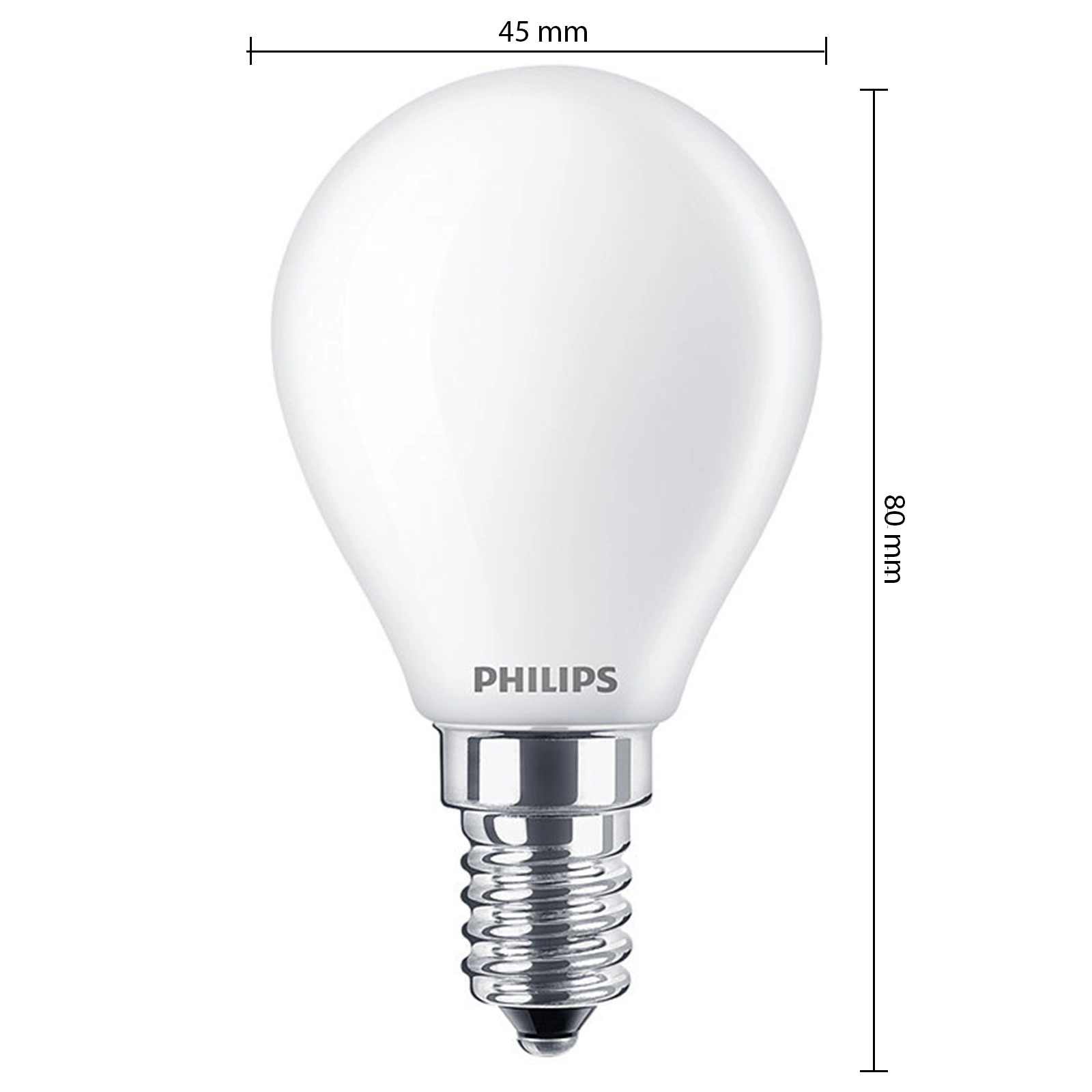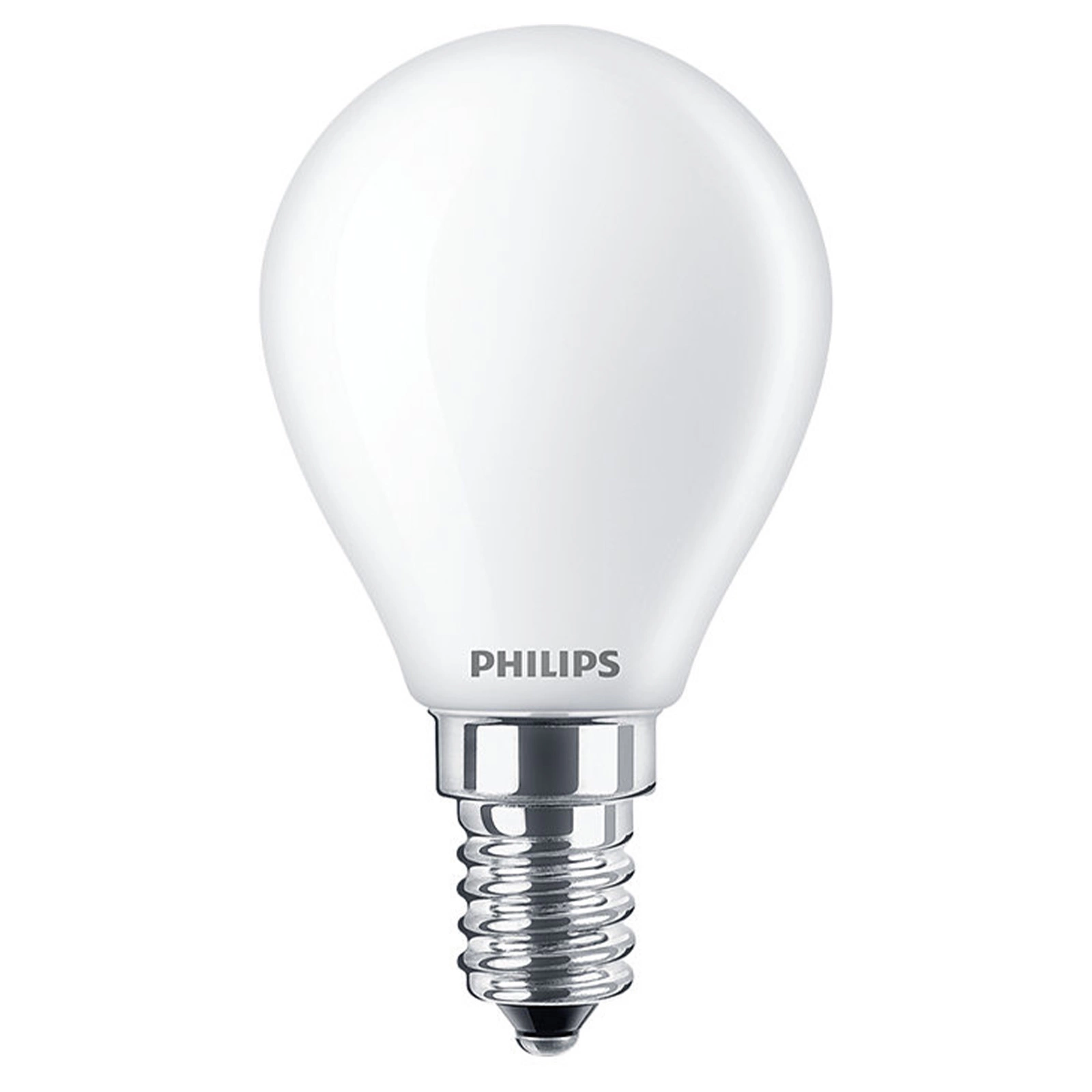 Die mattierten kugelförmigen LED-Lampen von Philips sorgen für einen wundervollen funkelnden Lichteffekt und eine außergewöhnliche Haltbarkeit. Auch im ausgeschalteten Zustand sehen sie wunderschön aus. Sie passen perfekt in Kronleuchter mit kleinem Gewinde (E14).