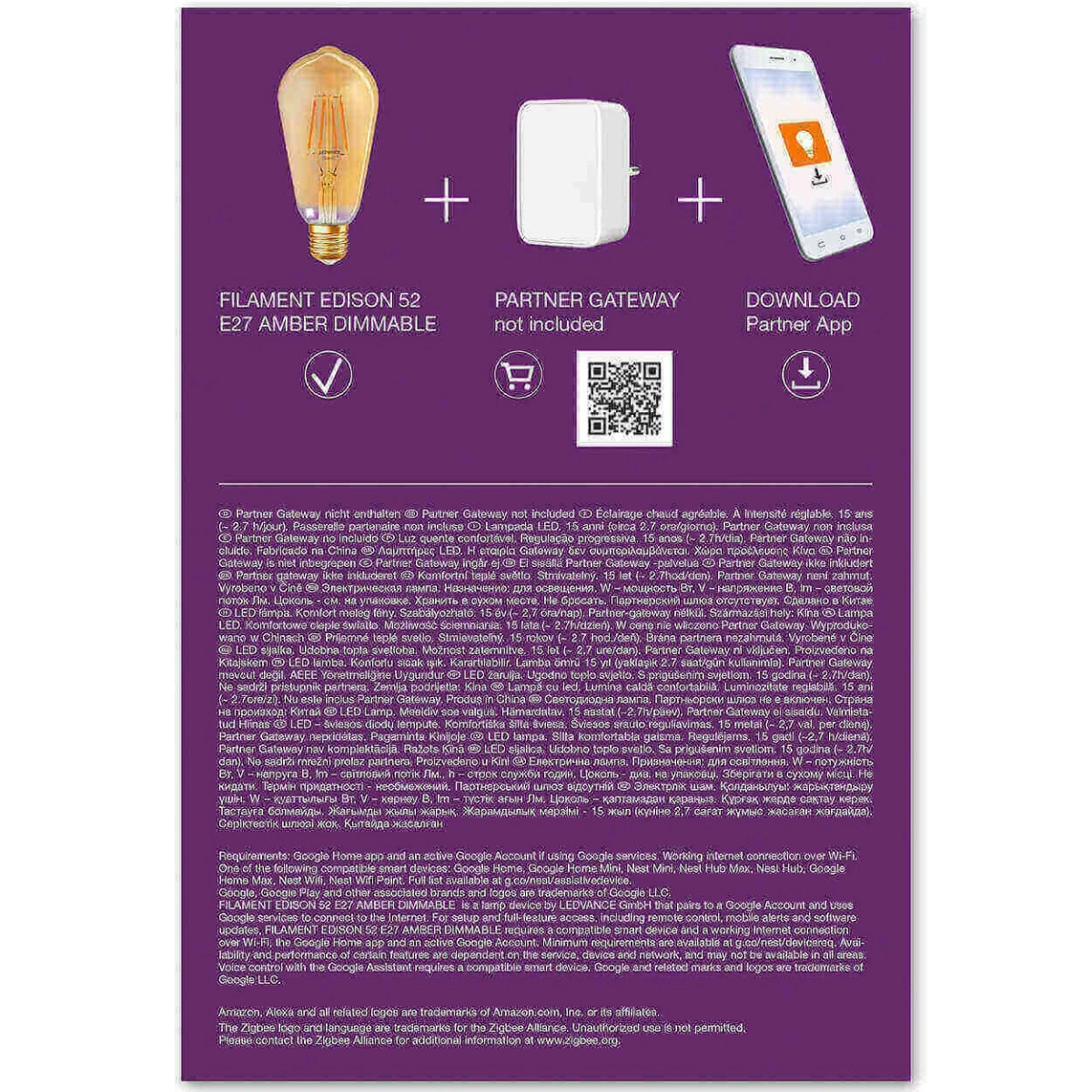 Die E27-LED-Glühbirne mit einer Leistung von 6 W entspricht einer herkömmlichen 52-W-Glühbirne. Die eingesetzte ZigBee-fähige SMART+ Technologie ermöglicht eine einfache Steuerung der Beleuchtung und die Dimmfunktion erlaubt die Anpassung der Lichtintensität nach Bedarf. Sie gibt ein angenehmes, warmweißes Licht mit einer Farbtemperatur von 2400K und einem Lichtstrom von 680 lm ab.