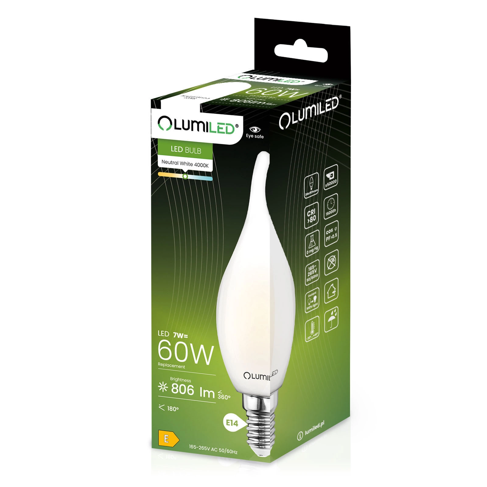 Die LED-Glühbirne der renommierten Marke LUMILED mit E14-Sockel und 7W ist ein hervorragender Ersatz für herkömmliche 60W-Glühbirnen und bietet Energieeinsparungen und eine längere Lebensdauer. Sie gibt ein Licht mit einem Lichtstrom von 806 Lumen und einer neutralen Farbe von 4000K ab und ist damit ideal für die Innenbeleuchtung, wo eine helle und natürliche Lichtfarbe gewünscht wird. Der Abstrahlwinkel von 360° ermöglicht eine breite Lichtstreuung und eine effektive Ausleuchtung des Raumes. Dank ihrer hochwertigen Konstruktion hat sie eine Lebensdauer von bis zu 15.000 Stunden, was einer langjährigen Nutzung entspricht. Darüber hinaus kann sie in einem breiten Spannungsbereich von 165-265 V betrieben werden und ist für Umgebungstemperaturen von -20°C bis +40°C geeignet. Eine ideale Wahl für alle, die Wert auf Energieeinsparung und Umweltschutz legen.