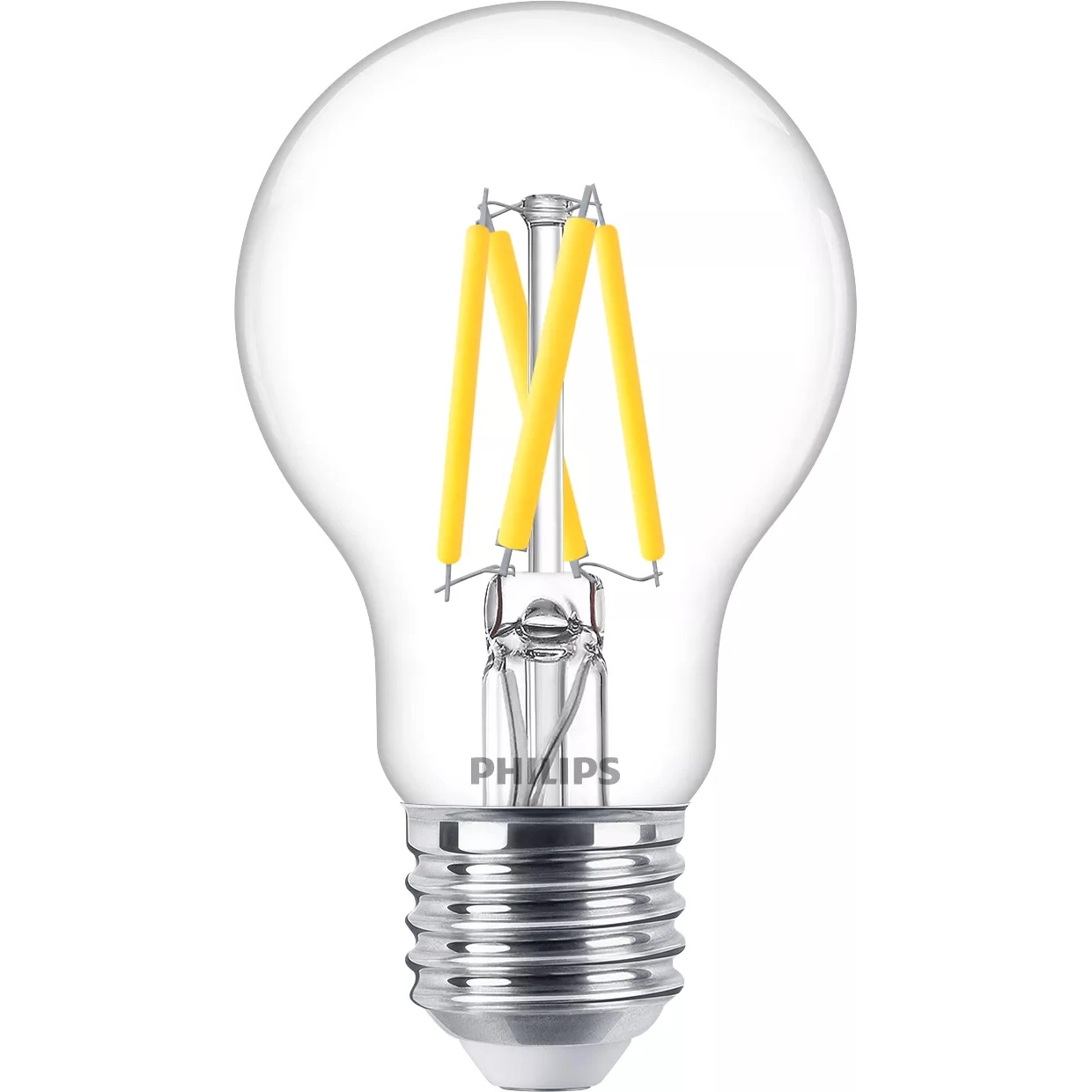 Nicht jede LED-Glühbirne reagiert auf das Dimmen auf die gleiche Weise. Philips LED-Glühbirnen mit dem WarmGlow-Dimm-Effekt reduzieren nicht nur die Helligkeit, sondern verändern auch die Lichtfarbe in einen wärmeren Farbton, wodurch eine besonders angenehme und entspannende Atmosphäre entsteht. Standard-LED-Glühbirnen leuchten beim Dimmen nur weniger hell, behalten aber die gleiche kühle Farbtemperatur bei - und bieten somit nicht den gleichen gemütlichen und komfortablen Effekt. Wenn Sie sich für WarmGlow-Effektlampen entscheiden, haben Sie die volle Kontrolle über die Atmosphäre im Raum - von hellem Tageslicht bis hin zu einem warmen Abendlicht, das ideal zum Entspannen ist.
