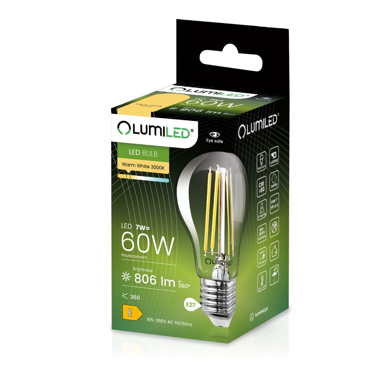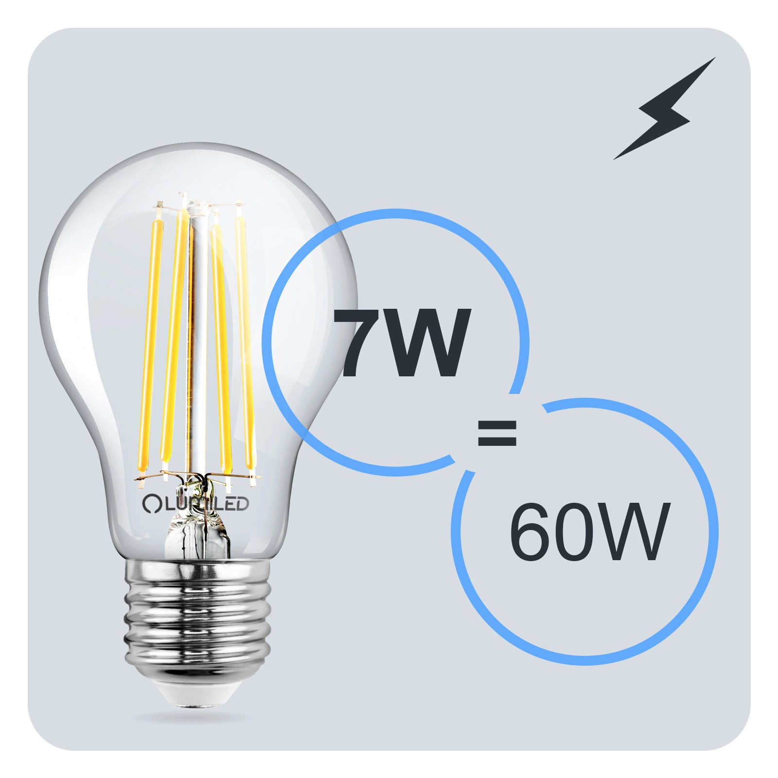 LED Lampen E27, Glühbirne A60 7W = 60W 806lm 360° 3000K warm Glühfaden LUMILED