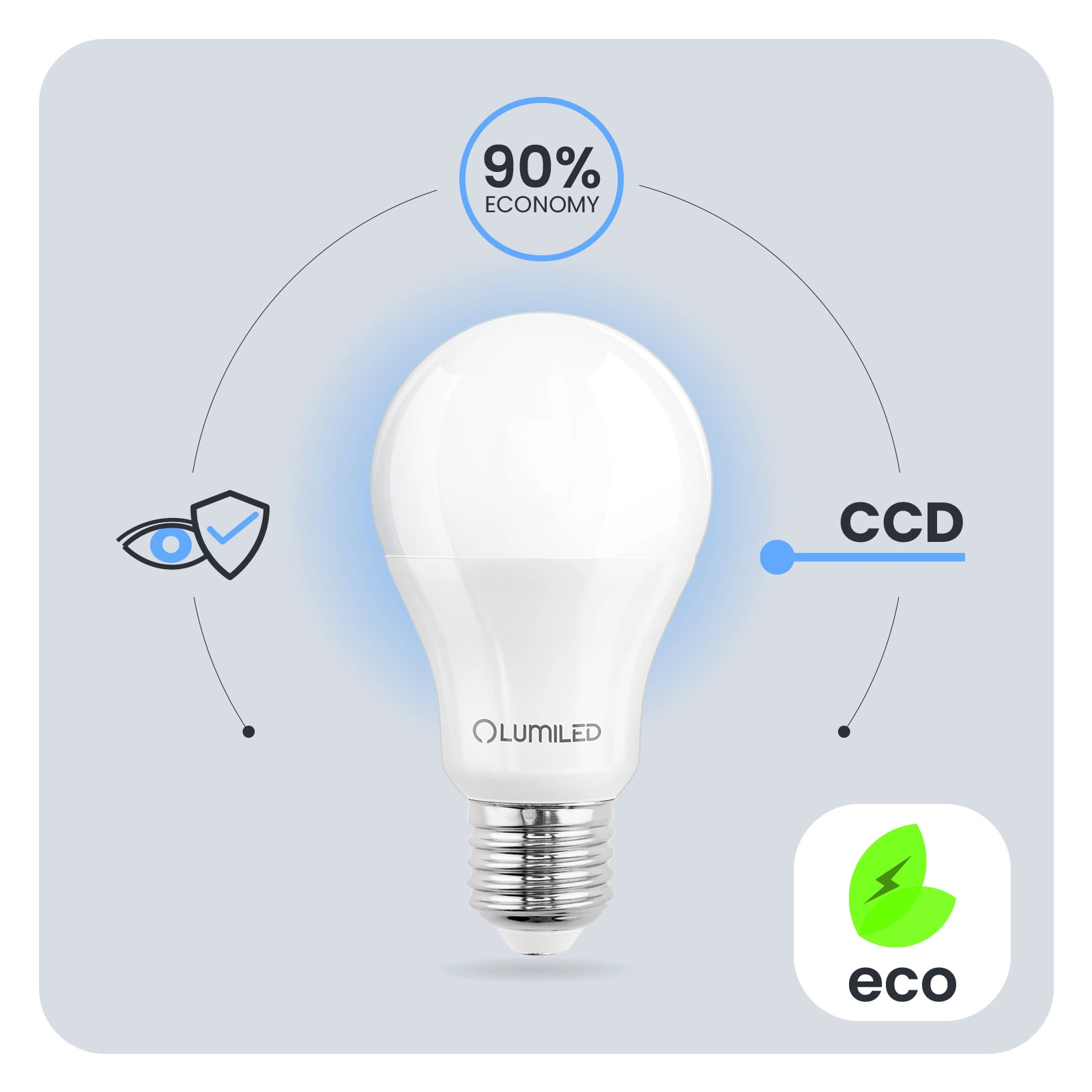 Der in der LED-Glühbirne verwendete CCD-Inverter macht die Glühbirne widerstandsfähig gegen Einbrüche und Spitzen in der Netzspannung. Das Licht flackert und zittert nicht. Der CCD-Konverter sorgt dafür, dass die Glühbirne über einen langen Zeitraum hinweg einwandfrei funktioniert. Bei der Entwicklung der LUMILED-Glühbirnen wurde an den Benutzer gedacht. Eine schlechte Beleuchtungsqualität kann zur Ermüdung der Augen führen. Deshalb verfügen unsere Lampen über die technische Entwicklung Eye Safe, um in jedem Raum eine angenehme und augenfreundliche Beleuchtung zu gewährleisten.
