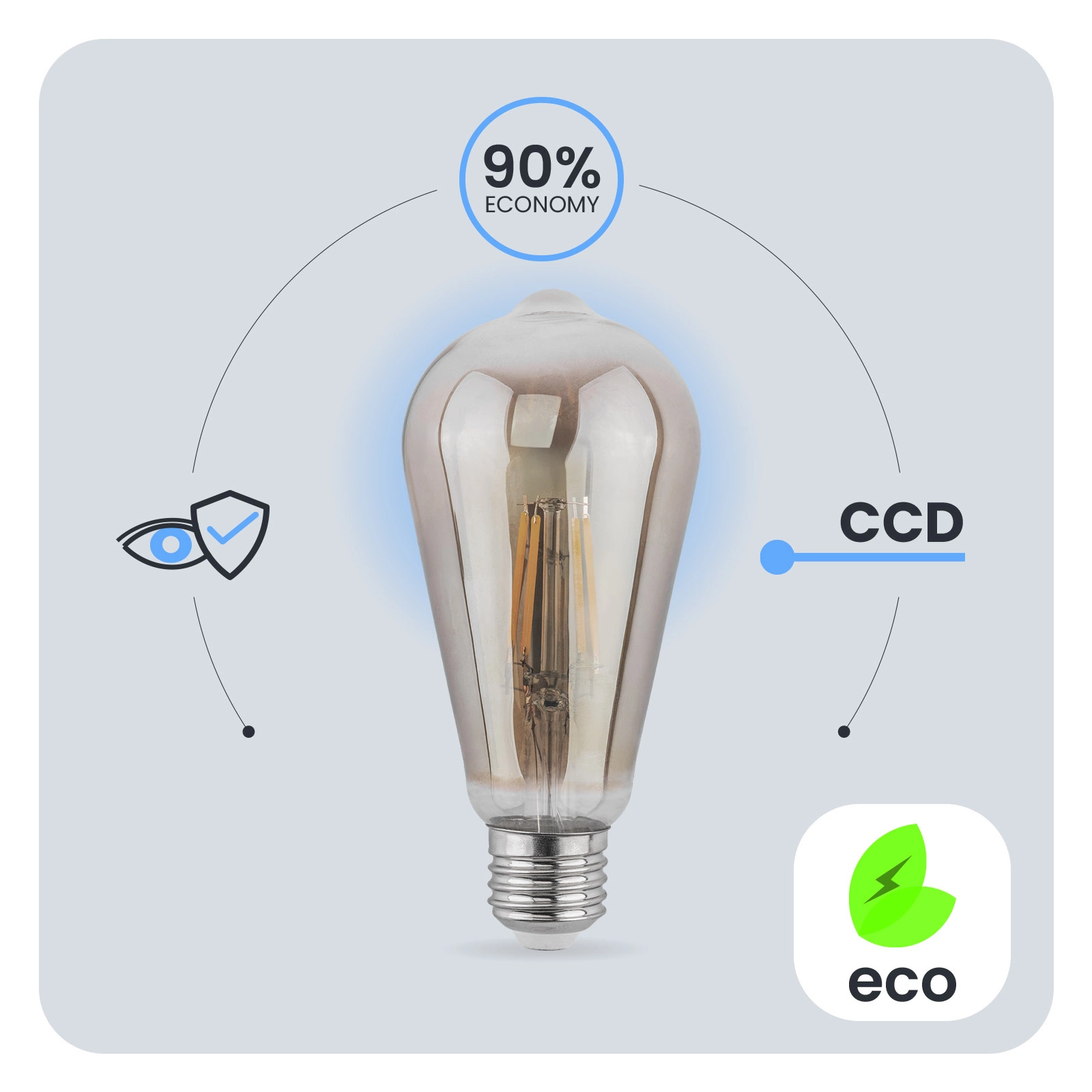 Der in der LED-Glühbirne verwendete CCD-Inverter macht die Glühbirne widerstandsfähig gegen Einbrüche und Spitzen in der Netzspannung. Das Licht flackert und zittert nicht. Der CCD-Konverter sorgt dafür, dass die Glühbirne über einen langen Zeitraum hinweg einwandfrei funktioniert. Bei der Entwicklung der LUMILED-Glühbirnen wurde an den Benutzer gedacht. Eine schlechte Beleuchtungsqualität kann zur Ermüdung der Augen führen. Deshalb verfügen unsere Lampen über die technische Entwicklung Eye Safe, um in jedem Raum eine angenehme und augenfreundliche Beleuchtung zu gewährleisten.