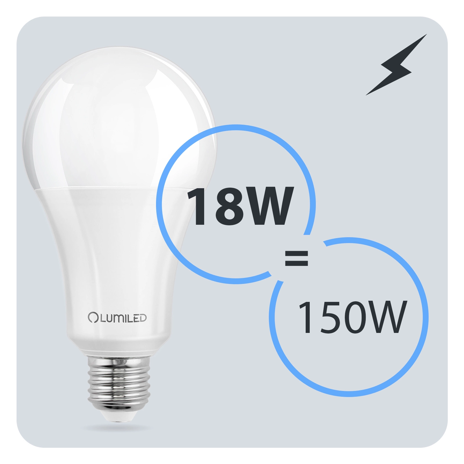 Die LED-Glühbirne der renommierten Marke LUMILED mit E27-Sockel und 18 W ist ein hervorragender Ersatz für herkömmliche 150 W-Glühbirnen und bietet Energieeinsparungen und eine längere Lebensdauer. Sie gibt Licht mit einem Lichtstrom von 2.500 Lumen und einer warmen Farbe von 3.000K ab und ist damit ideal für die Innenbeleuchtung, wo eine weiche, angenehme Lichtfarbe gewünscht wird. Der Abstrahlwinkel von 260° ermöglicht eine breite Streuung des Lichts und leuchtet den Raum effektiv aus. Dank ihrer hochwertigen Verarbeitung hat sie eine Lebensdauer von bis zu 15.000 Stunden, was einer langjährigen Nutzung entspricht. Außerdem arbeitet sie in einem weiten Spannungsbereich von 165-265 V und ist für den Einsatz bei Umgebungstemperaturen von -20°C bis +40°C geeignet. Eine ideale Wahl für alle, die Wert auf Energieeinsparung und Umweltschutz legen.