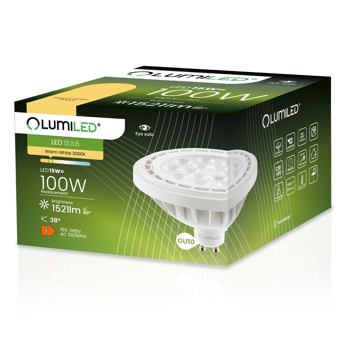 LED Lampen GU10, Glühbirne ES111 15W = 100W 1521lm 38° 3000K warm LUMILED