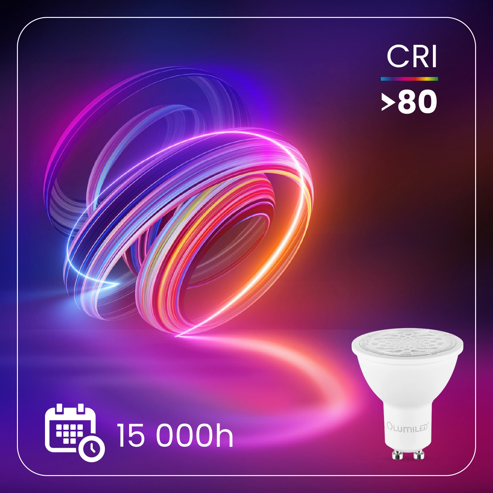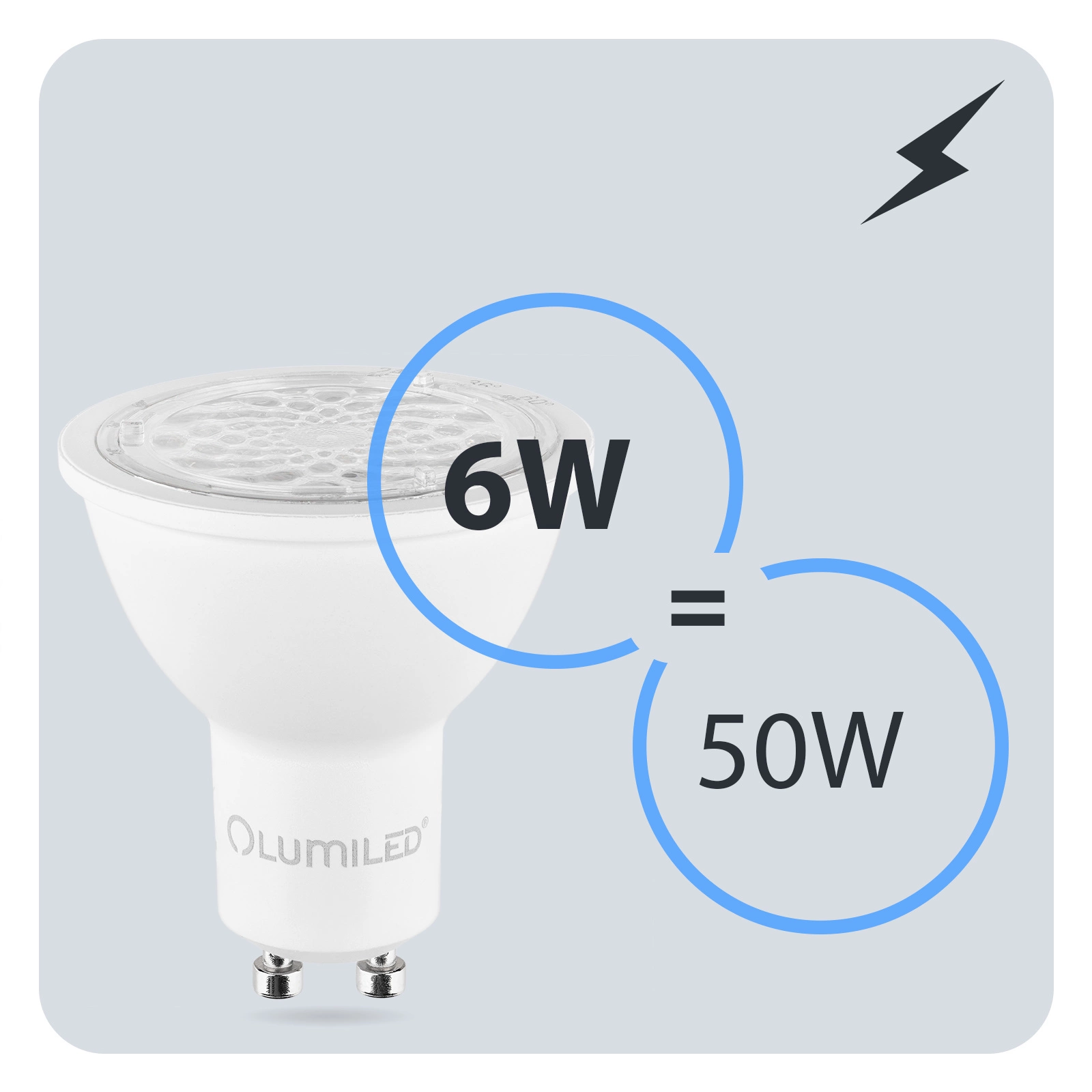 Die LED-Glühbirne der renommierten Marke LUMILED mit GU10-Sockel und 6W ist ein hervorragender Ersatz für herkömmliche 50W-Glühbirnen und bietet Energieeinsparungen und eine längere Lebensdauer. Sie emittiert Licht mit einem Lichtstrom von 580 Lumen und einer neutralen Farbe von 4000K und ist damit ideal für die Innenbeleuchtung, wo eine helle und natürliche Lichtfarbe gewünscht wird. Der verstellbare Lichtwinkel von 24, 36 oder 60° ermöglicht eine individuelle Anpassung der Lichtstreuung und hebt die zu beleuchtenden Objekte wirkungsvoll hervor. Dank ihrer hochwertigen Verarbeitung hat sie eine Lebensdauer von bis zu 15.000 Stunden, was einer langjährigen Nutzung entspricht. Darüber hinaus arbeitet sie in einem weiten Spannungsbereich von 165-265 V und ist für den Einsatz bei Umgebungstemperaturen von -20°C bis +40°C geeignet. Eine ideale Wahl für alle, die Wert auf Energieeinsparung und Umweltschutz legen.
