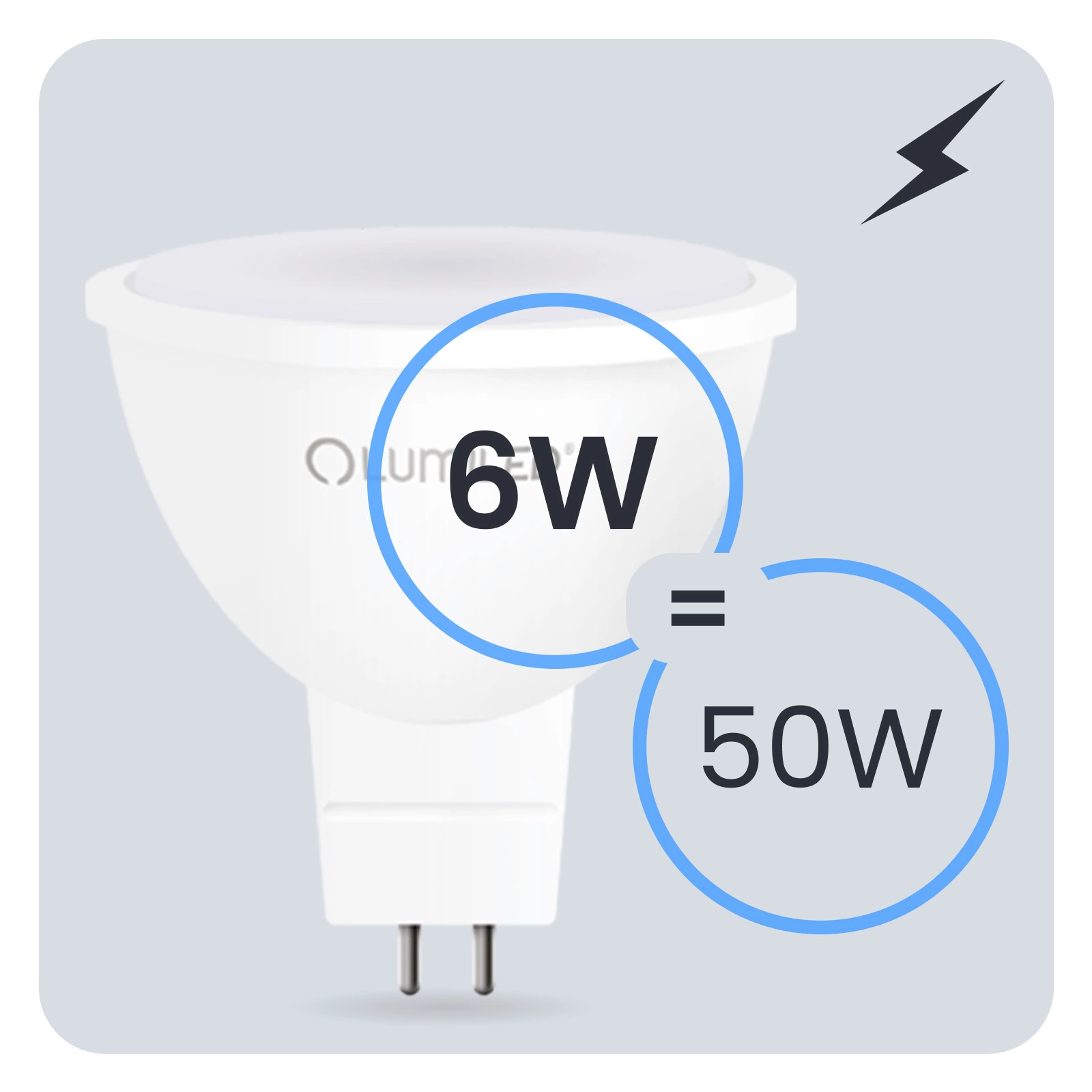 Die LED-Glühbirne der renommierten Marke LUMILED mit GU5.3-Sockel und 6W ist ein hervorragender Ersatz für herkömmliche 50W-Glühbirnen und bietet Energieeinsparungen und eine längere Lebensdauer. Sie emittiert Licht mit einem Lichtstrom von 580 Lumen und einer kalten Lichtfarbe von 6500K und ist damit ideal für die Innenbeleuchtung, wo eine starke weiße Lichtfarbe erforderlich ist. Der Abstrahlwinkel von 120° ermöglicht eine breite Streuung des Lichts, wodurch der Raum effektiv beleuchtet wird. Dank ihrer hochwertigen Konstruktion hat sie eine Lebensdauer von bis zu 15.000 Stunden, was einer langjährigen Nutzung entspricht. Darüber hinaus kann sie in einem breiten Spannungsbereich von 165-265 V betrieben werden und ist für Umgebungstemperaturen von -20°C bis +40°C geeignet. Eine ideale Wahl für alle, die Wert auf Energieeinsparung und Umweltschutz legen.