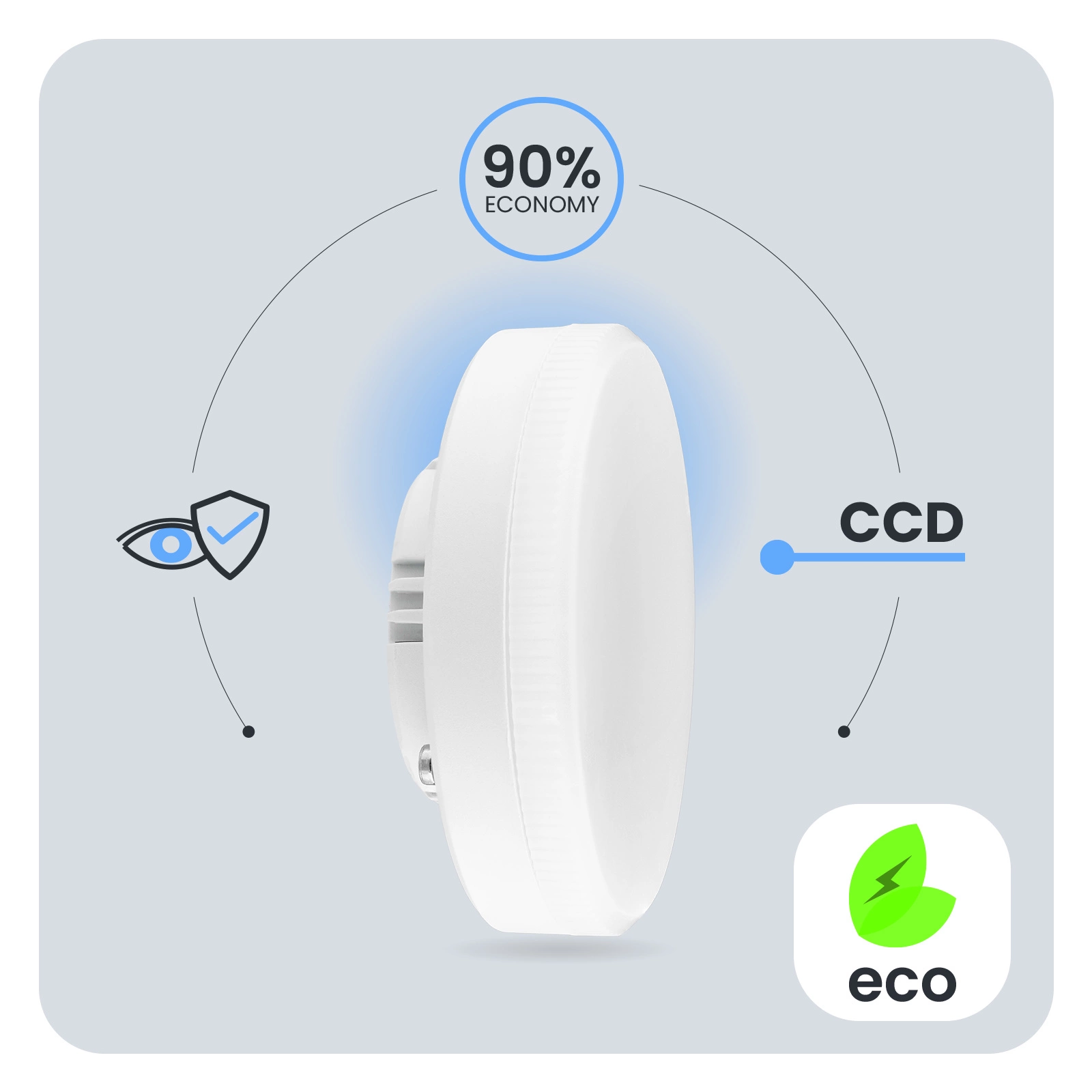 Die Glühbirne ist ideal für den Einsatz in jedem Haushalt, Geschäft, Hotel oder Restaurant als Akzent- oder Allgemeinbeleuchtung und kann in alle herkömmlichen Leuchten mit einem GX53-Sockel eingesetzt werden