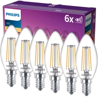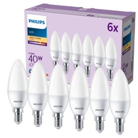 Set mit 6 LED-Kerzenlampen E14 B35 4,3 W = 40 W, 470 lm, 2700 K, warmes Filament PHILIPS