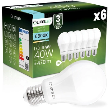 Ausverkauft6x LED Lampen E27, Glühbirne A60 5W = 40W 470lm 260° 6500K kalt LUMILED