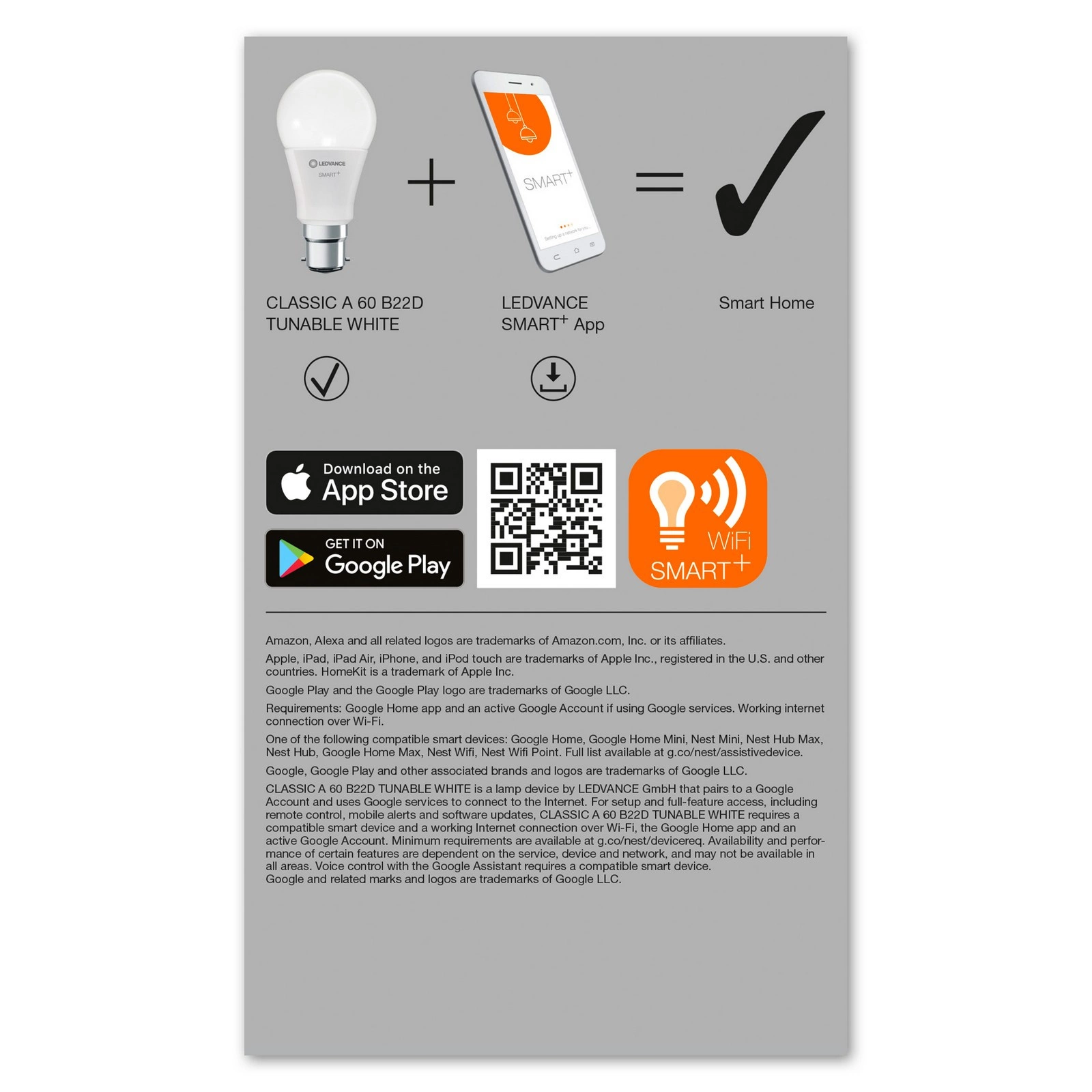 - Steuerung über die LEDVANCE SMART+ App (mit Android™️ mind. 8.0 oder iOS 14.0).