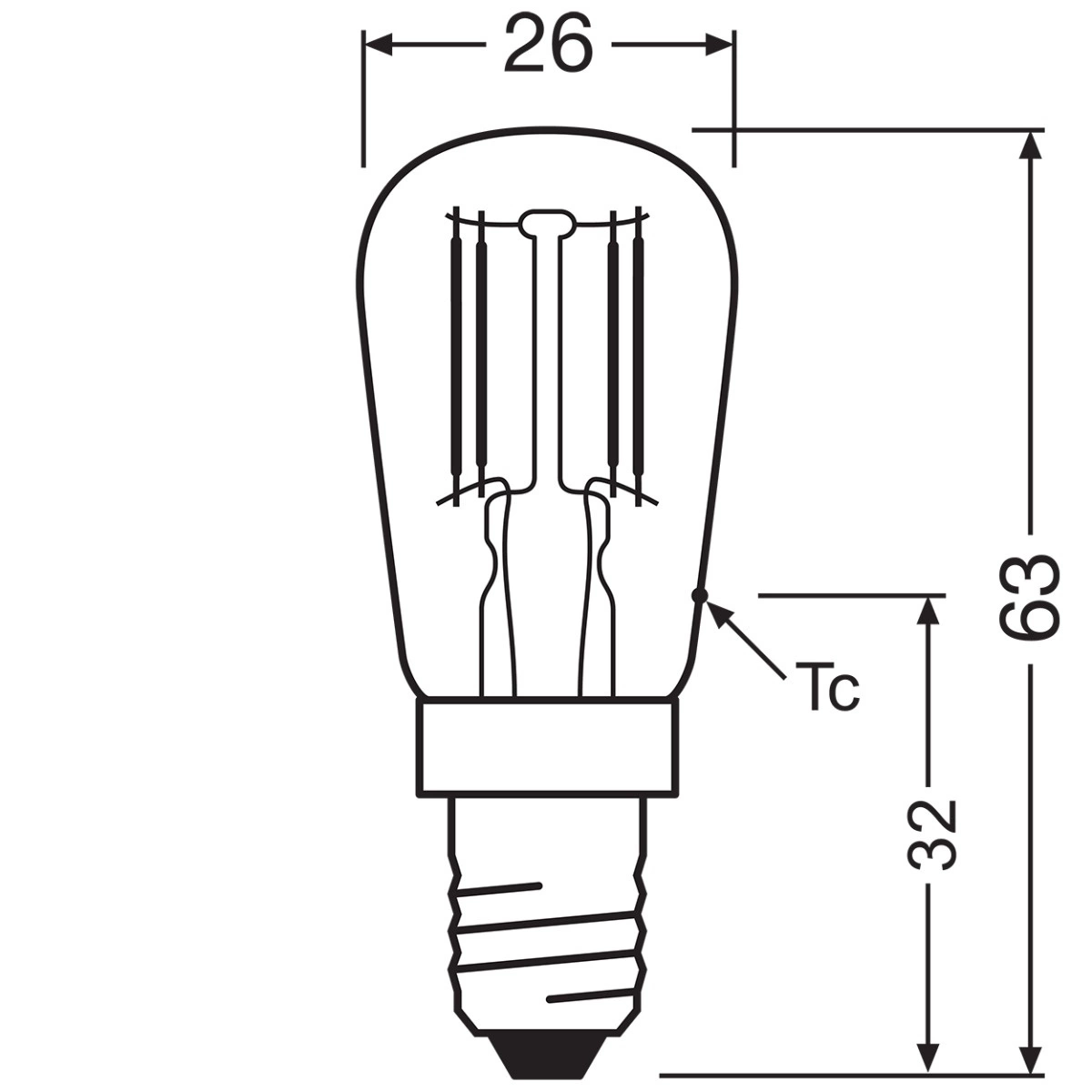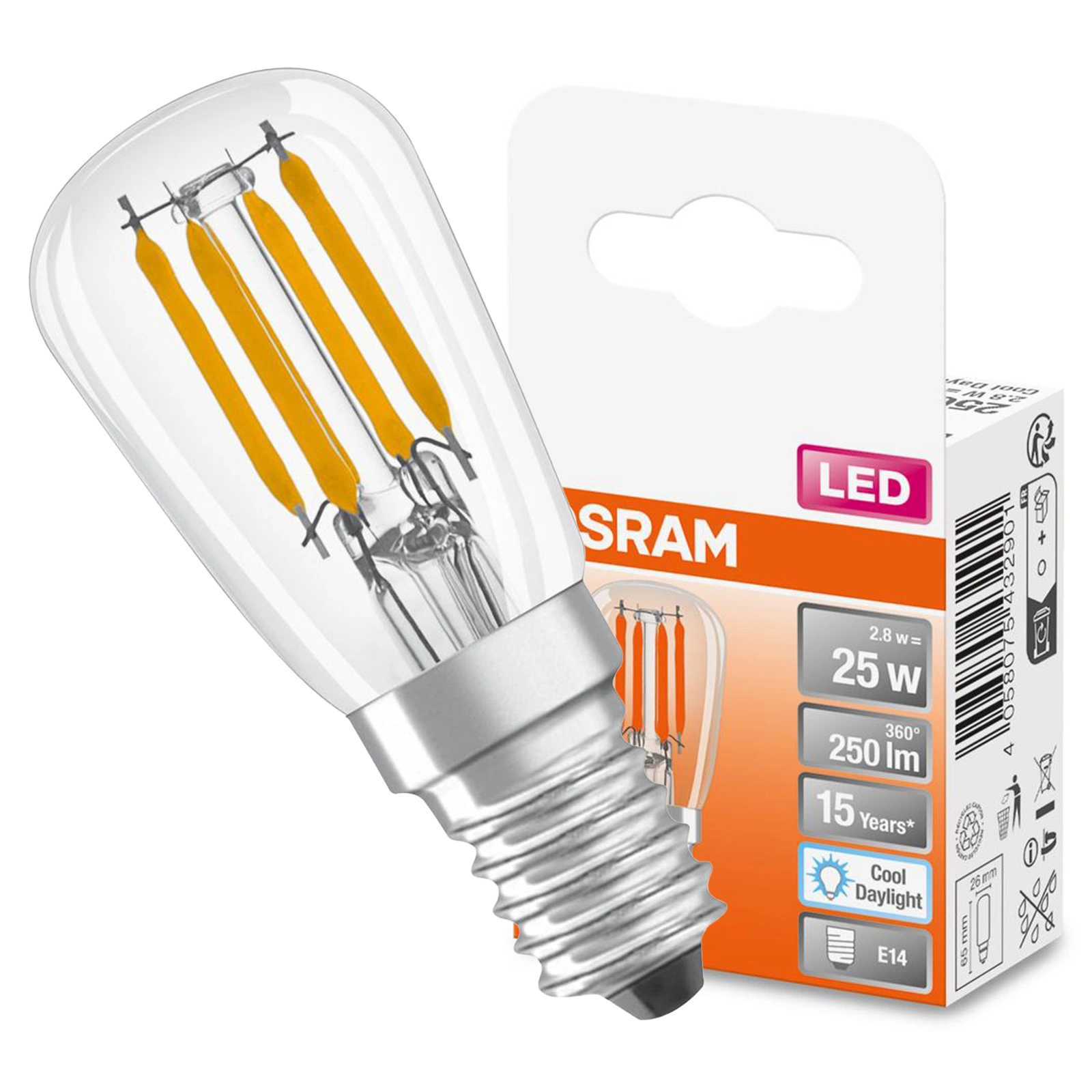 LED-Leuchtmittel E14 T26 2,8W = 25W 250lm 6500K Kalt 320° OSRAM STAR Filament