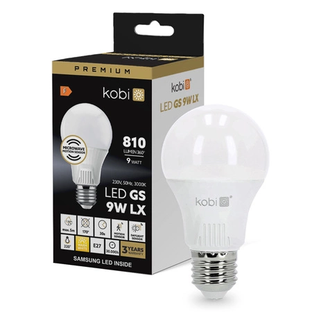 LED-Leuchtmittel E27 A60 9W = 60W 810lm 3000K Wärme 220° KOBI Bewegungs- und Dämmerungssensor