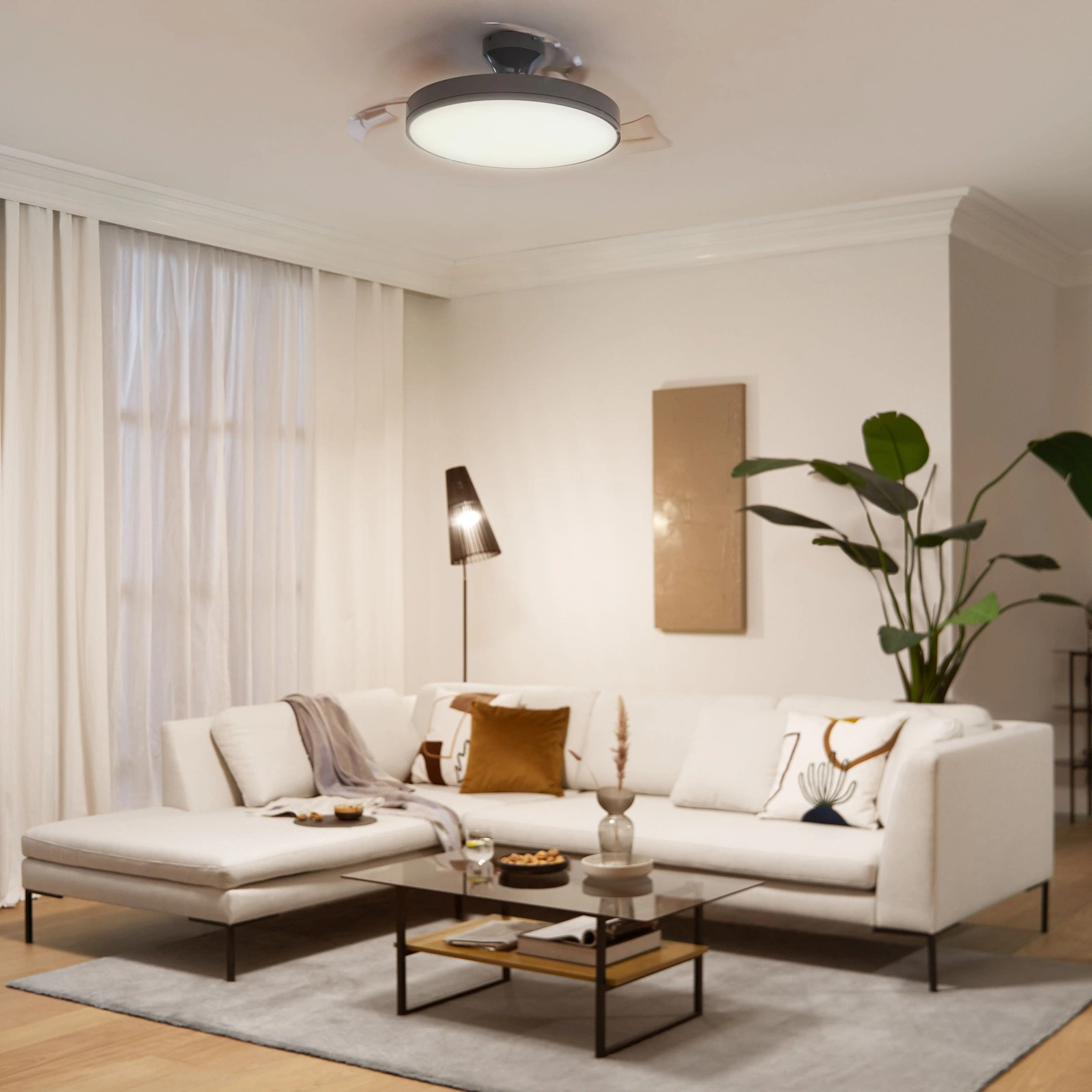 Der Philips LED-Deckenventilator sorgt für ein starkes, helles und dennoch angenehmes Licht im Haus, das mit der mitgelieferten Fernbedienung oder dem Wandschalter gesteuert werden kann.