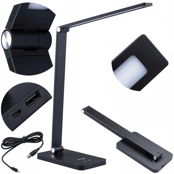 LED-Schreibtischlampe aus der INGRID- Serie , Stromversorgung über USB, hergestellt aus hochwertiger Metalllegierung . Die Schreibtischlampe mit einer Leistung von 7 W und einem Lichtstrom von 420 lm verfügt über die Möglichkeit, die Farbtemperatur des LICHTS anzupassen , wodurch sie ein breites Anwendungsspektrum hat und mit einem zarten und entspannenden Licht mit einer Bartemperatur erstrahlen kann von 2700K, eine neutrale, blendfreie Farbe mit einer Balkentemperatur von 4000K oder ein kräftiges und anregendes Licht mit einer Farbtemperatur von 6000K. Eine Lampe mit minimalistischem Erscheinungsbild kombiniert mit einem modernen Touch-LIGHT-Farbschalter am Sockel ist eine ideale Ergänzung für jeden Raum, in dem eine universelle und benutzerfreundliche LICHTquelle benötigt wird.