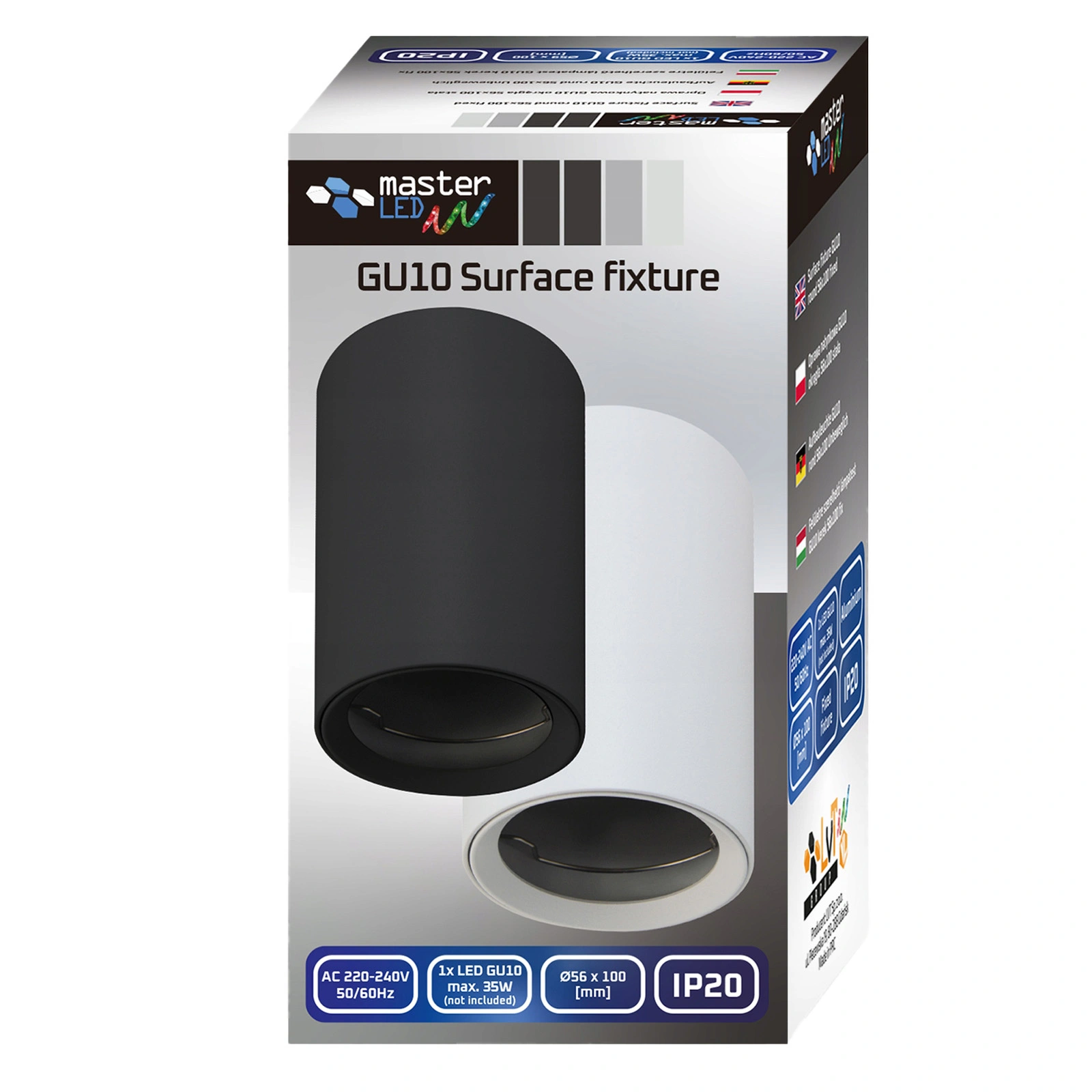 Feste Aufbauleuchte vom Typ SPOT , mattweiß, von der renommierten Firma MASTERLED , die in der Beleuchtungsbranche anerkannt ist . Die Leuchte ist mit einem beliebten GU10-Schaft (Gewinde) ausgestattet. Mit dem verwendeten Sockel können Sie je nach Bedarf LED- und herkömmliche Glühbirnen mit der entsprechenden Leistung und Lichtfarbe auswählen. Die maximale Leistung der Lichtquelle darf jedoch 35 W LED nicht überschreiten.
