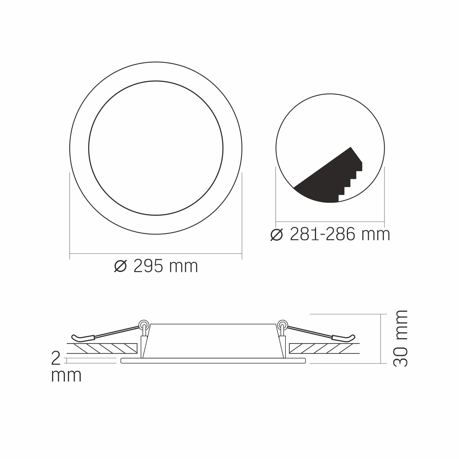 Die Lebensdauer des Produkts beträgt beeindruckende 30.000 Stunden, was es zu einer hervorragenden Investition für die kommenden Jahre macht. Der Lichtverteilungswinkel beträgt 112 Grad und gewährleistet eine gleichmäßige Ausleuchtung der gesamten Fläche. Der Betriebstemperaturbereich von -20 bis +40°C garantiert Zuverlässigkeit unter verschiedenen Bedingungen. Ihre Größe (Höhe 28 mm, Durchmesser 281 mm) ermöglicht eine einfache Integration in die meisten Decken. Das Produkt wurde mit Blick auf ein minimalistisches, modernes Interieur entworfen. Der Einsatz dieser Leuchte bietet eine energiesparende und ökologische Alternative zu herkömmlichen Lichtquellen.