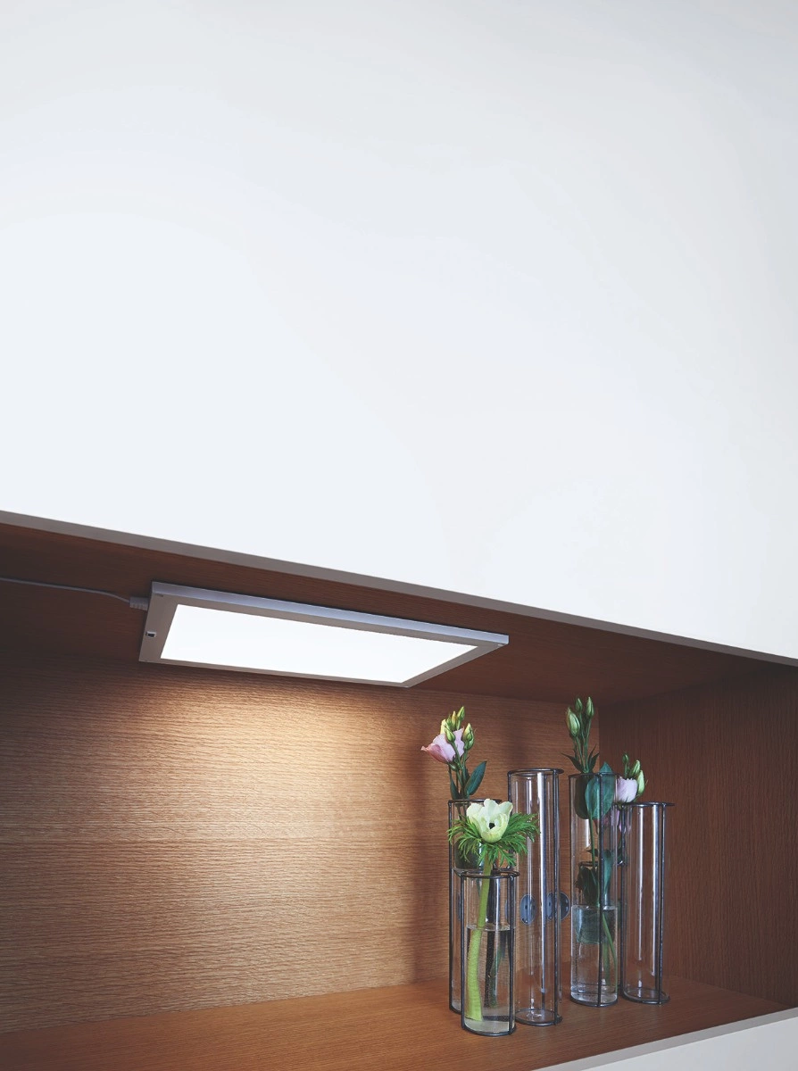 Die 8W LED Panel Smart Unterbauleuchte ist eine stilvolle und funktionelle Unterbauleuchte in Weiß, die perfekt in jede moderne Küche oder jedes Badezimmer passt. Dank der SMART+ WiFi-Technologie können Sie die Lichtfarbe und Farbtemperatur (CCT) der 530lm-Leuchte ganz einfach einstellen, um zu jeder Tageszeit das perfekte Ambiente zu schaffen. Die Dimmoption erweitert die Möglichkeiten der Lichtgestaltung zusätzlich.