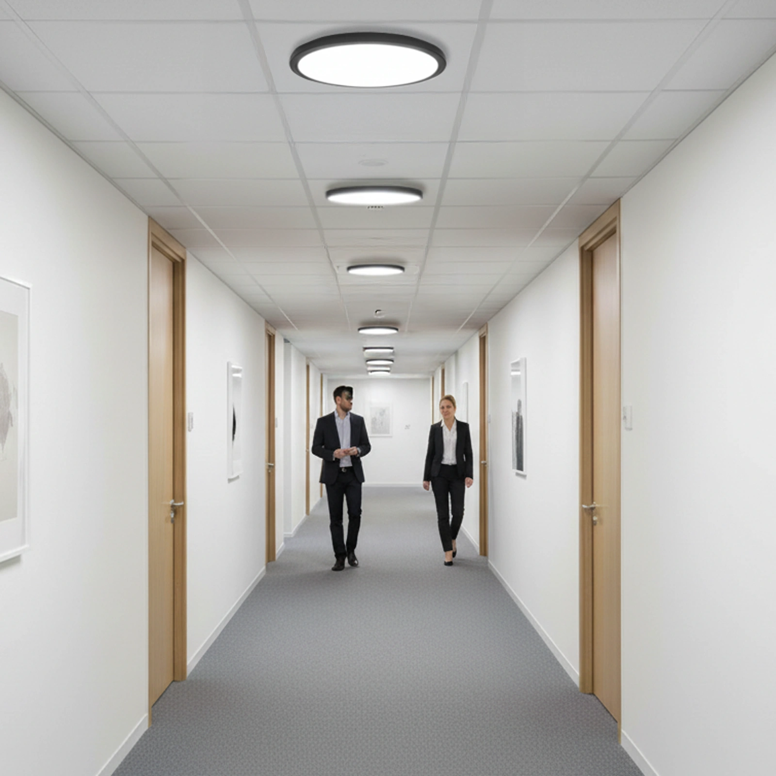 - Flure und Durchgänge - bietet eine gleichmäßige Beleuchtung mit einem weiten Winkel, der keine dunklen Ecken hinterlässt.