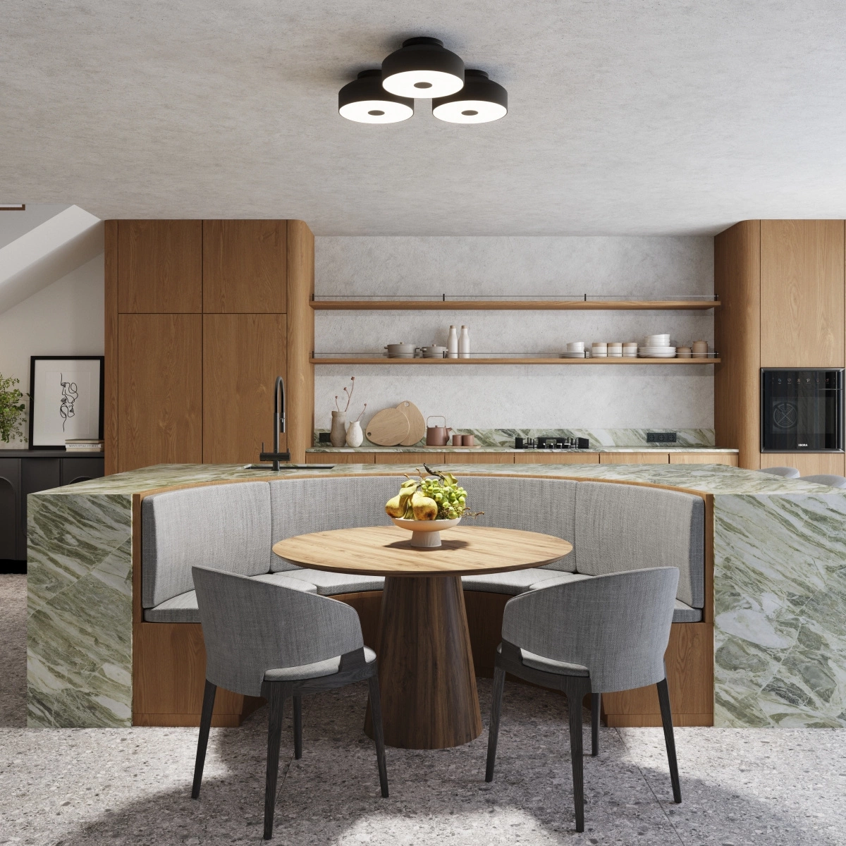 • Beleuchtung im Esszimmer - die Leuchte OMIQ Crimson mit vier Lichtpunkten leuchtet den Tisch perfekt aus und unterstreicht die Atmosphäre beim Essen.