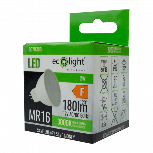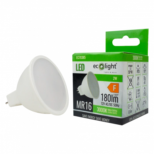 Die Ecolight-Lampe besticht nicht nur durch ihre Effizienz, sondern auch durch ihre Langlebigkeit - mit einer Lebensdauer von bis zu 20.000 Stunden, die einen langen und störungsfreien Einsatz ermöglicht. Sie wird mit 12 V Gleichstrom betrieben, verfügt über einen GU5.3-Sockel und ist aus langlebigem Kunststoff gefertigt, der zusätzlichen Schutz bietet. Die Energieklasse F und der Null-Quecksilbergehalt machen sie umweltfreundlich. CE- und RoHS-Zertifizierungen bestätigen höchste Qualität und die Einhaltung internationaler Standards. Wählen Sie ein Produkt von Ecolight und genießen Sie jeden Tag perfektes Licht!