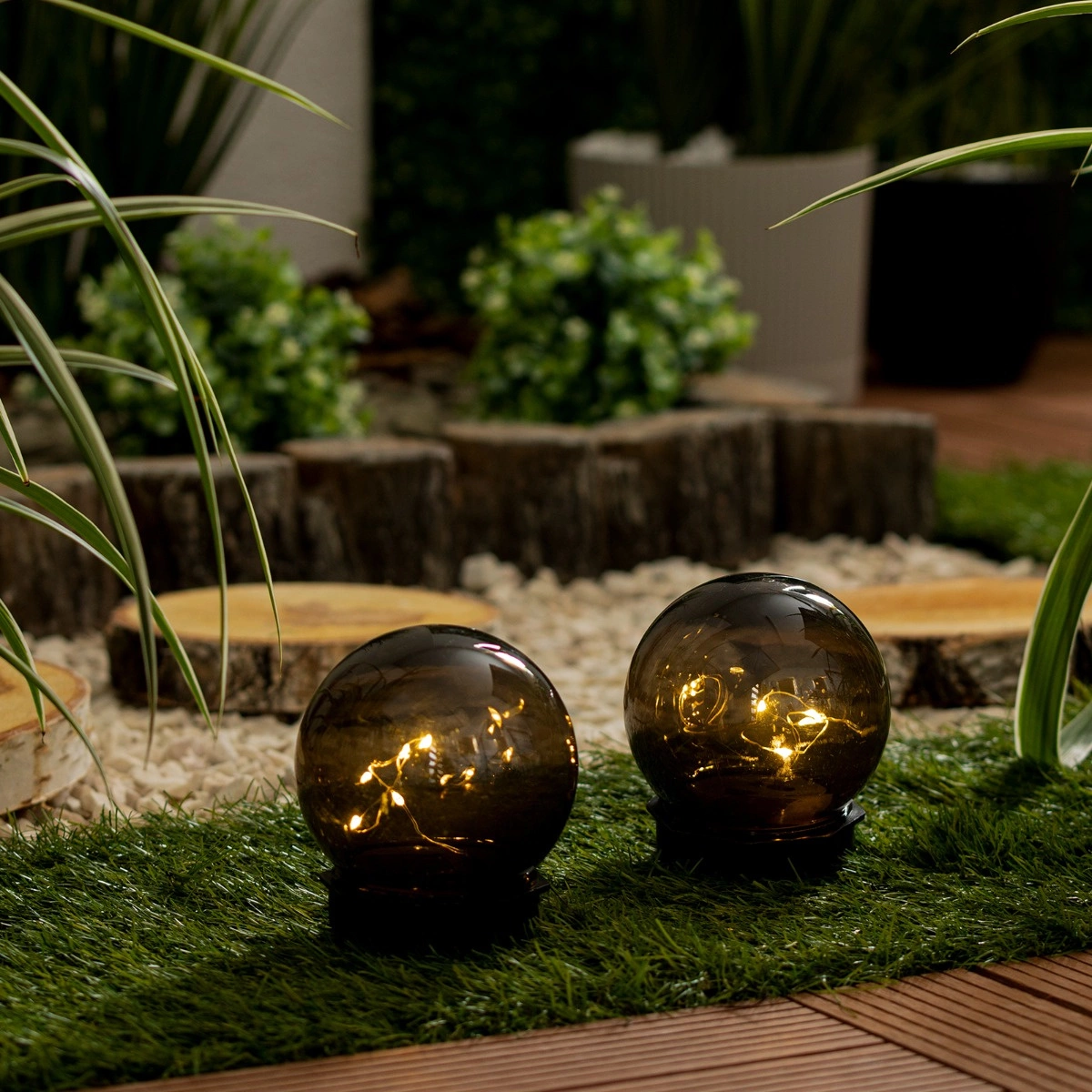 Eine kugelförmige Solarlampe mit geräuchertem Schirm ist eine moderne und ökologische Beleuchtungslösung für Ihren Garten. Die solide Konstruktion der Lampe garantiert eine hohe Haltbarkeit und das außergewöhnliche und moderne Design verleiht dem Garten ein elegantes Aussehen. Sie ist nicht nur eine praktische Lichtquelle, sondern auch ein stilvolles und einzigartiges Dekorationselement , das den Charme jedes Gartens unterstreicht. Damit schaffen Sie den Spagat zwischen guter Sicht und einem angenehmen, lauen Sommerabend in stimmungsvollem Licht.