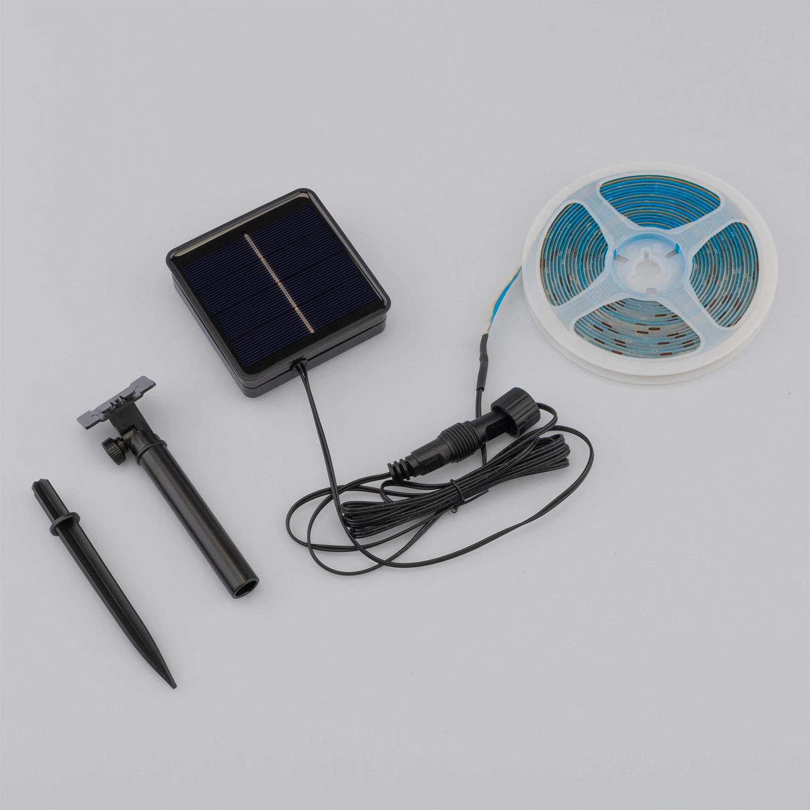 Das Solarband besteht aus hochwertigen Materialien, die Langlebigkeit und Zuverlässigkeit unter verschiedenen Wetterbedingungen garantieren. Mit der Schutzart IP44 ist sie resistent gegen das Eindringen von Staub und Feuchtigkeit und eignet sich daher sowohl für Innen- als auch für Außenanwendungen. Sein flexibles Design ermöglicht eine einfache Anpassung an eine Vielzahl von Oberflächen und Formen, wie z. B. Ecken, gebogene Kanten oder unregelmäßige Strukturen. Darüber hinaus sind die verwendeten Materialien UV-beständig, was ein Ausbleichen verhindert und die Lebensdauer des Bandes auch bei längerer Sonneneinstrahlung verlängert.
