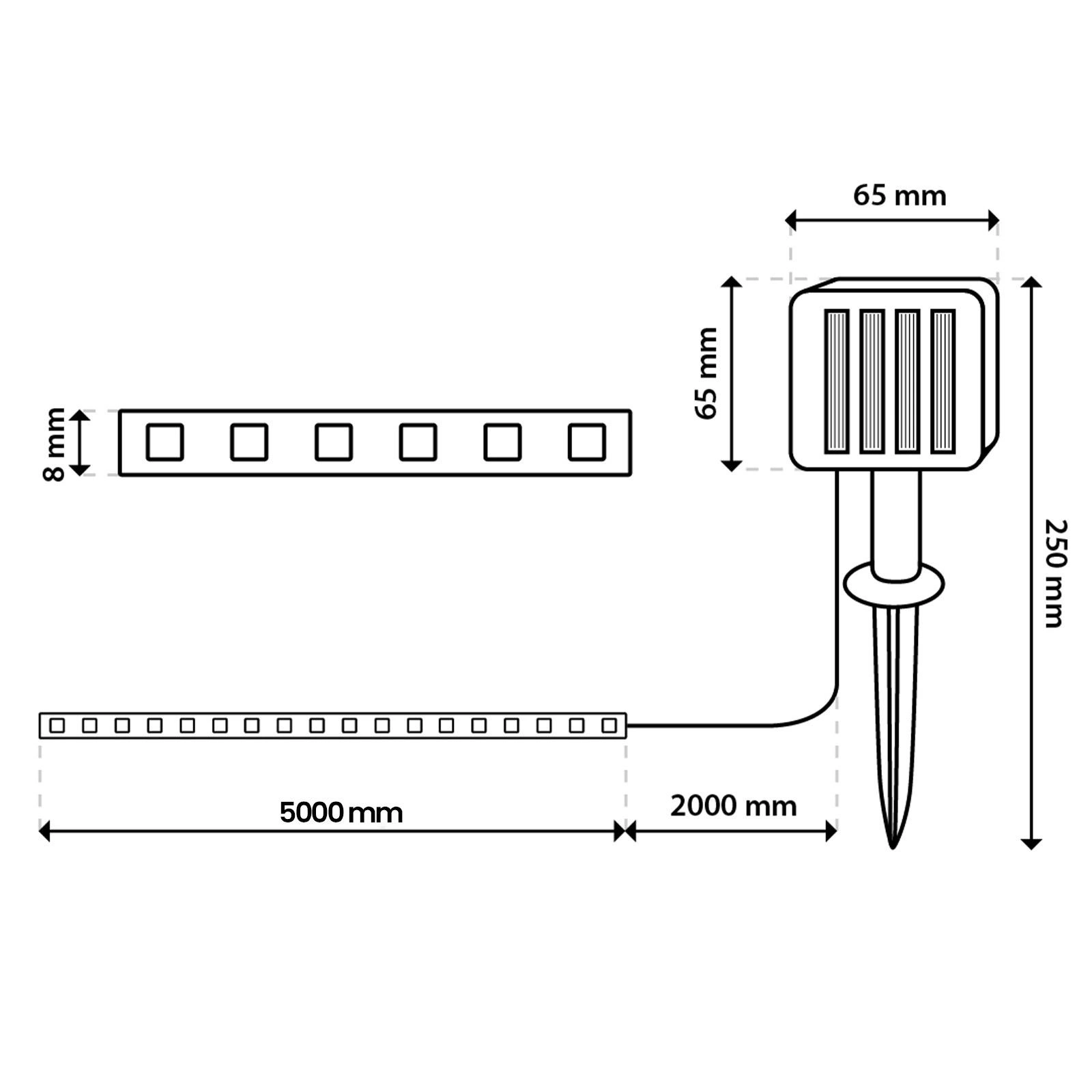 - Länge der Leiste: 5m + 2m + 0,5 Kabel