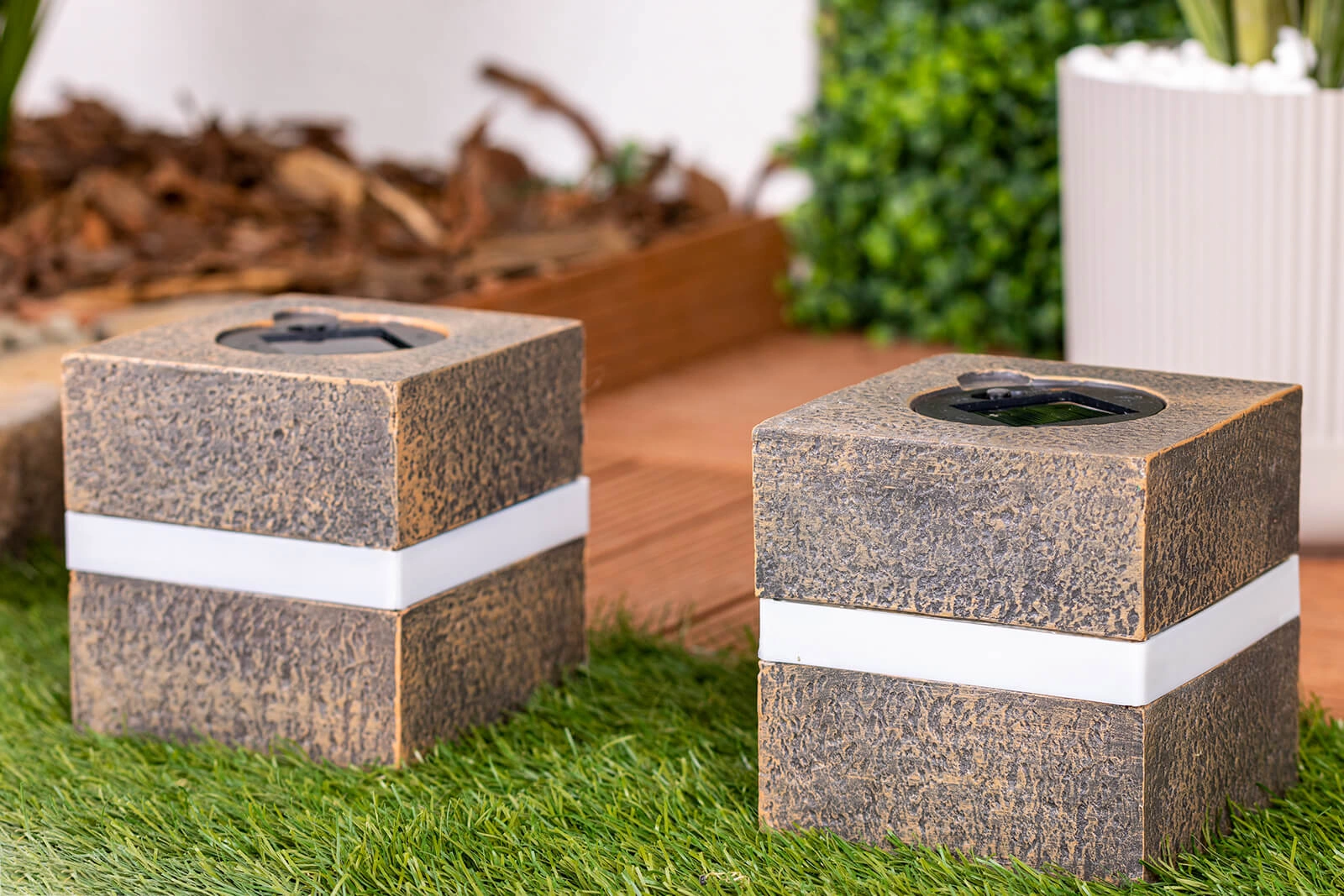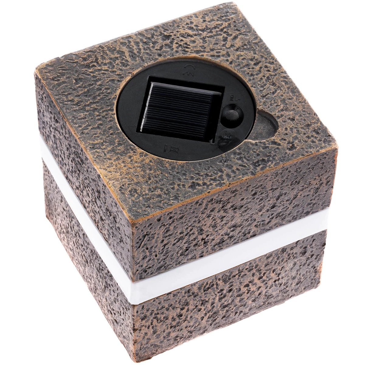 LED-Solarlampe für den Außenbereich, Garten, stehender Stein, 3000 K, IP44, 12 cm Dämmerungssensor
