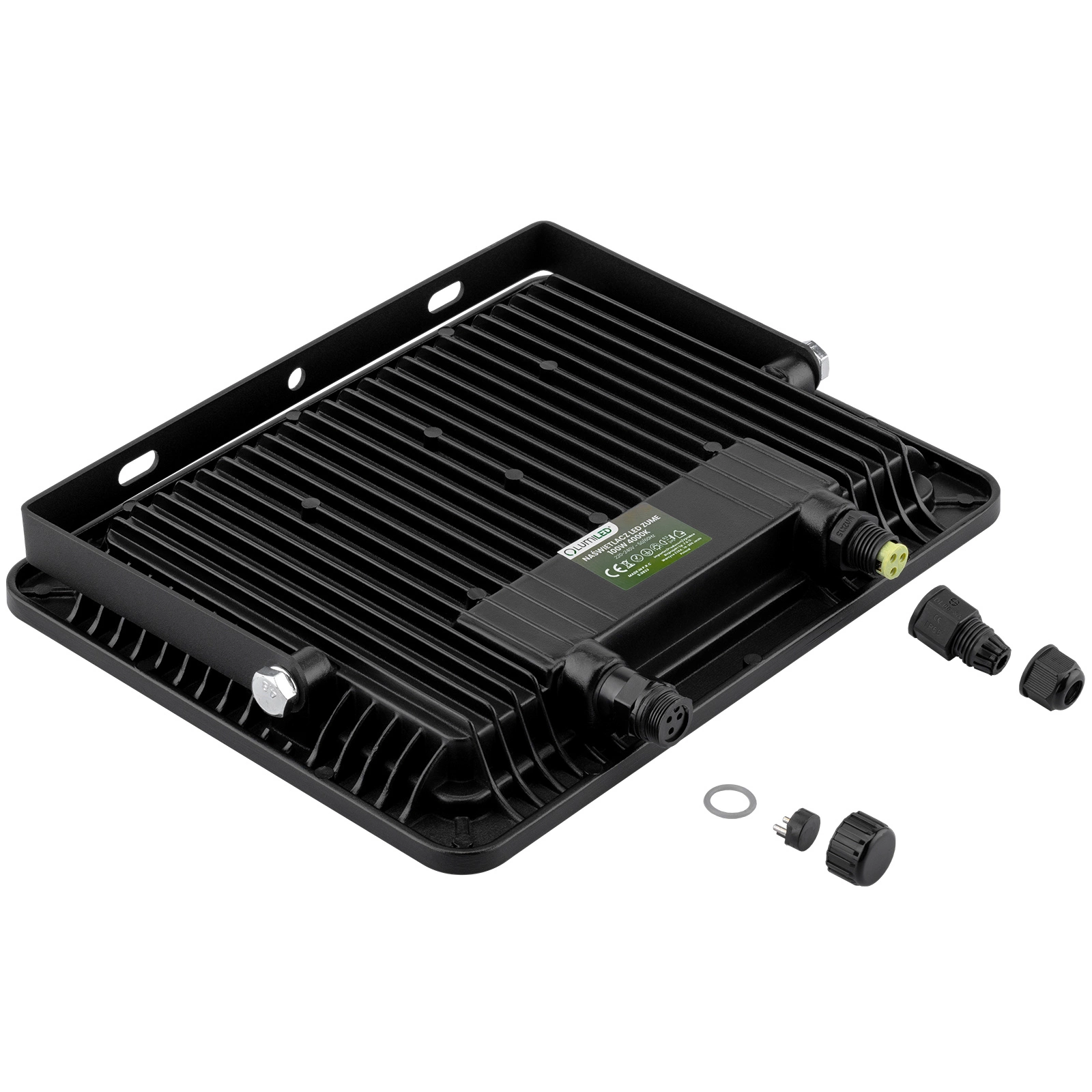 Der ZUME LED-Fluter ist mit einer energiesparenden 100W LED-Lichtquelle und einer neutralen Lichtfarbe mit einer Farbtemperatur von 4000K ausgestattet und sorgt für eine Ausleuchtung auf dem Niveau von 11.000lm – was uns einen hohen Lichtstrom von 110lm/W beschert .