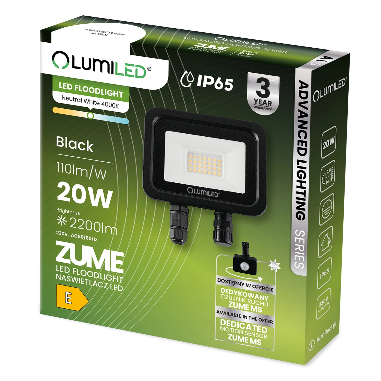 Der LED-Flutlichtstrahler ZUME aus der Advanced Lighting Series ist eine hochmoderne Leuchte, die von der renommierten Marke LUMILED angeboten wird, die sich durch herausragende Lichtinnovationen auszeichnet. Das Produkt zeichnet sich durch eine hervorragende Qualität des ausgestrahlten Lichts, eine hohe Lebensdauer und Beständigkeit gegen schwierige Witterungsbedingungen und mögliche mechanische Beschädigungen aus. Kompakte Abmessungen und geringes Gewicht ermöglichen eine einfache Installation anstelle von alten, abgenutzten und stromfressenden traditionellen Halogenlampen. Darüber hinaus bietet der Scheinwerfer eine Energieeinsparung von bis zu 90 % (im Vergleich zu Scheinwerfern mit Halogenlampen). Direkte Kabeleinführung möglich, mit Hilfe eines eingebauten Steckers!