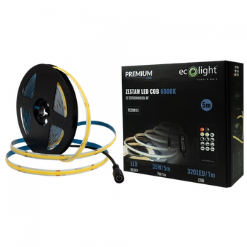 LED-Streifen COB 7W/m 630lm/m 320LED/m 24V 6000K Cold IP20 Rolle 5m + Netzteil + Fernbedienung Ecolight