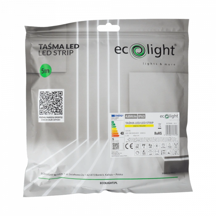 Entdecken Sie unvergleichliche Beleuchtungsmöglichkeiten mit der Ecolight LED-Leiste, die moderne Technologie mit elegantem Design verbindet. Mit einer Leistung von 4,8 W pro Meter und bis zu 60 gelben LEDs pro Meter bietet dieses Produkt nicht nur intensives, energiegeladenes Licht, sondern sorgt auch für Energieeffizienz. Es eignet sich sowohl für Bereiche, in denen Sie Glanz erzeugen möchten, als auch für Bereiche, in denen Funktionalität wichtig ist, wie z. B. Gärten, Bäder oder Küchen. Die Installation ist dank der 12-V-Gleichstromversorgung, die auch eine hohe Betriebssicherheit gewährleistet, ein Kinderspiel.