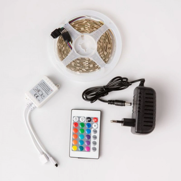 LED-Streifen SMD 5050 7.2W/m 60LED/m Multicolor RGB IP20 Reel 5m + Netzteil + Fernbedienung Ecolight