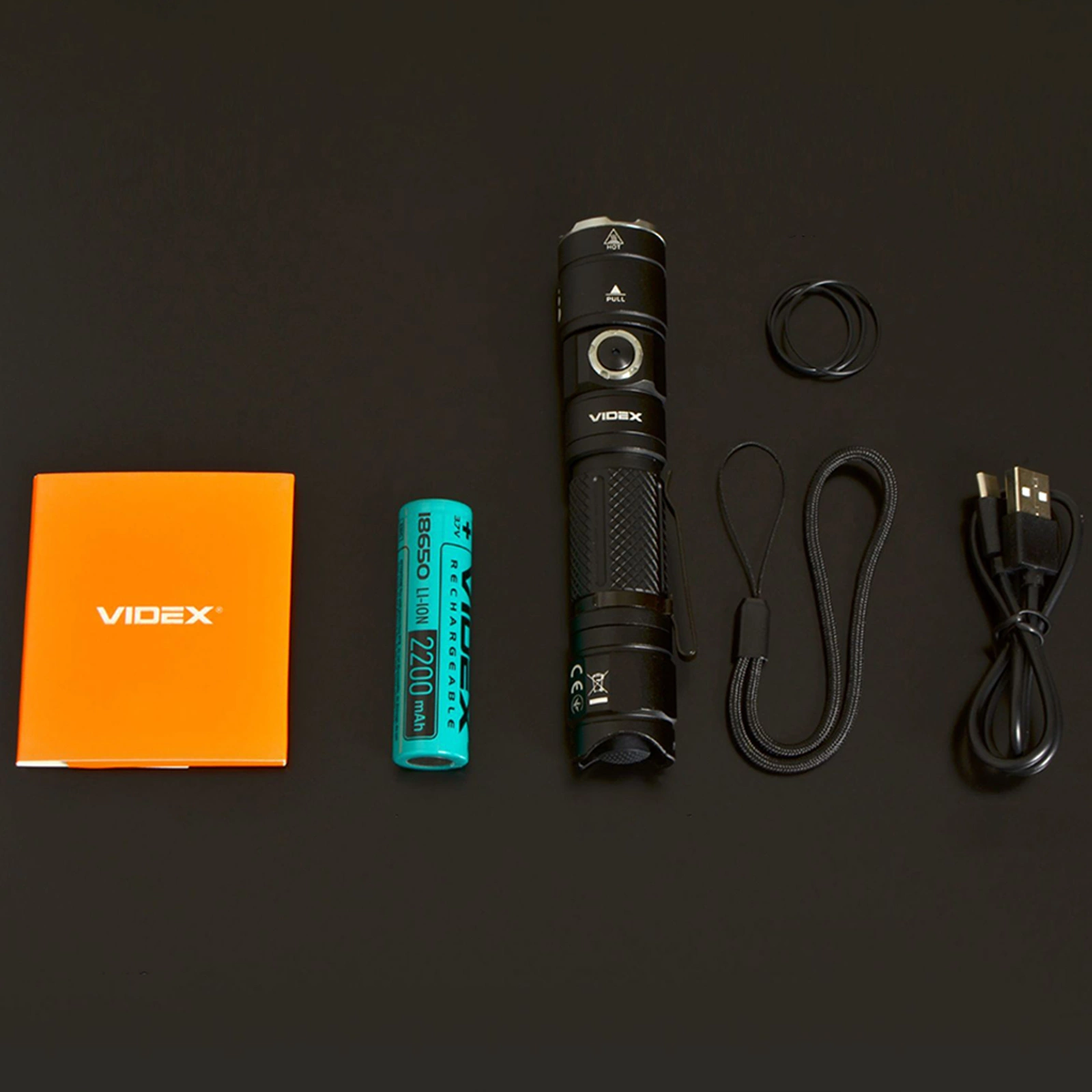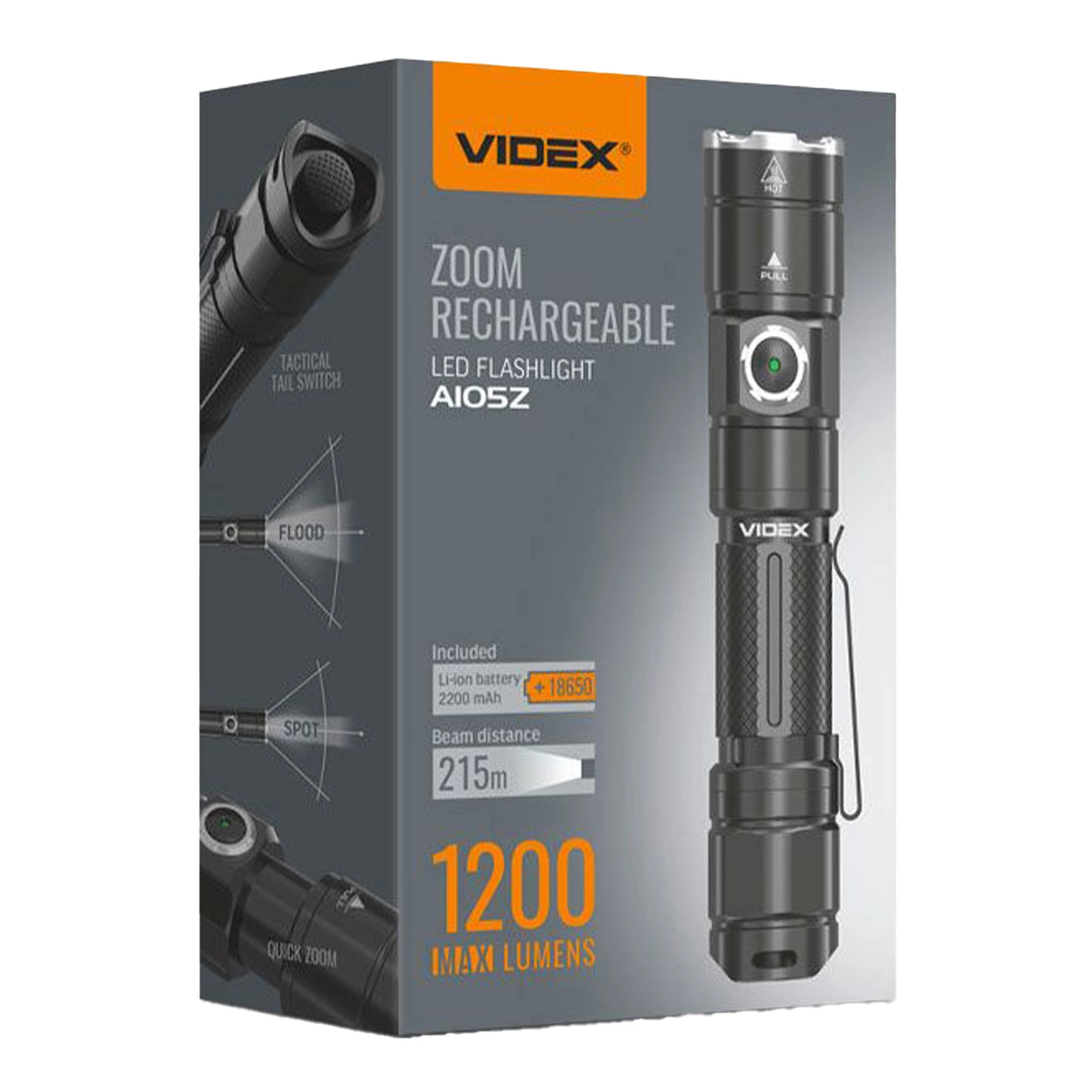 LED Wiederaufladbare Hand-Taschenlampe 10W 1200lm Zoom 6 Modi USB-C IP44 Videx