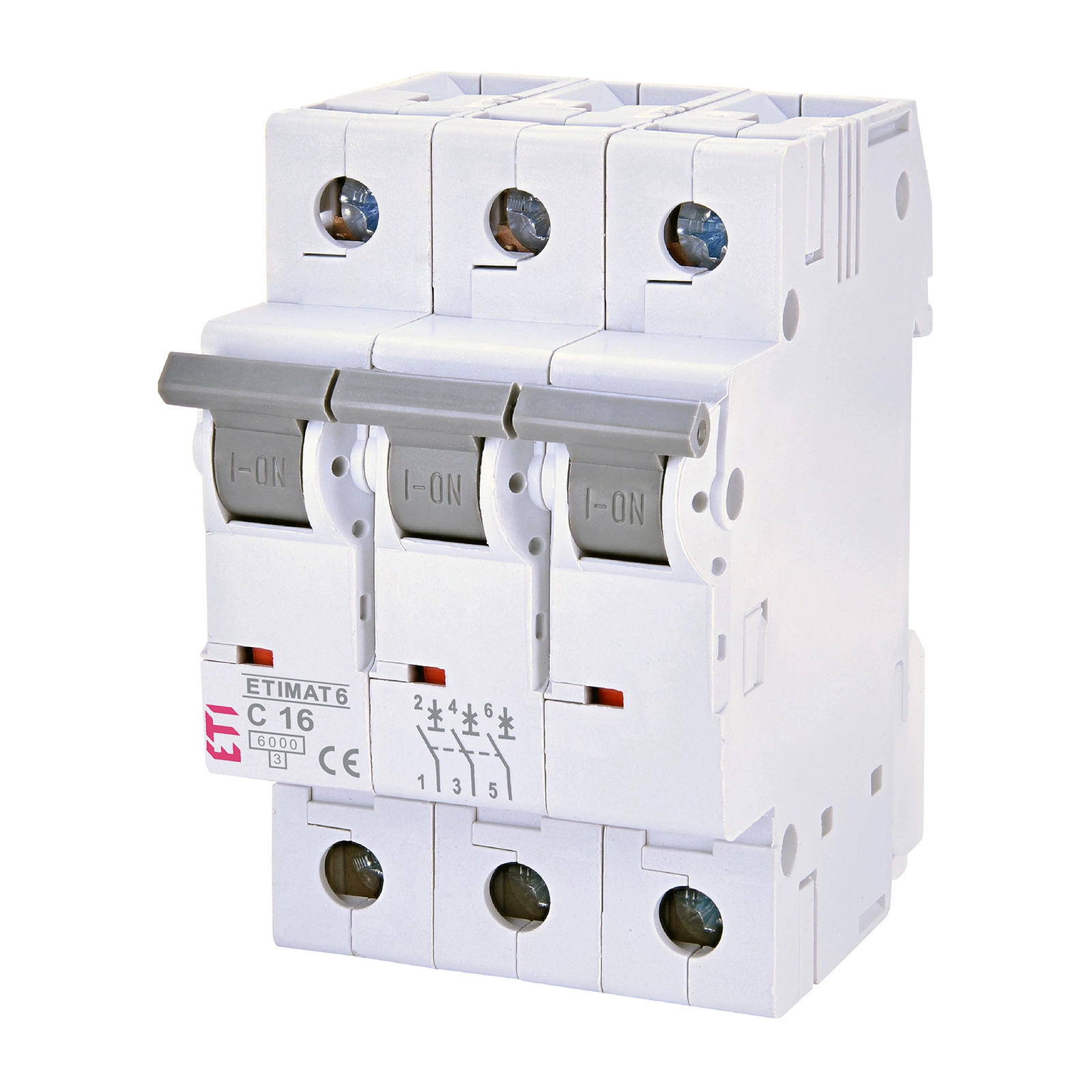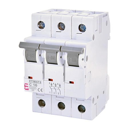 Leistungsbegrenzer 3-polig 3P C16A 6kA AC. Hierbei handelt es sich um ein elektrisches Gerät, das die Stromversorgung im Falle einer Überlastung oder eines zu hohen Energieverbrauchs im Vergleich zur angeschlossenen Leistung abschaltet.