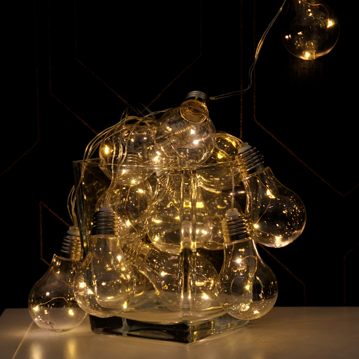 Die Girlande kann auch innerhalb des Gebäudes verwendet werden . Es kann um eine Gardinenstange, eine Lampe, um eine Vase auf dem Tisch gewickelt oder in eine große transparente Vase gestellt werden und sorgt so für eine tolle Belichtung und eine magische Atmosphäre.