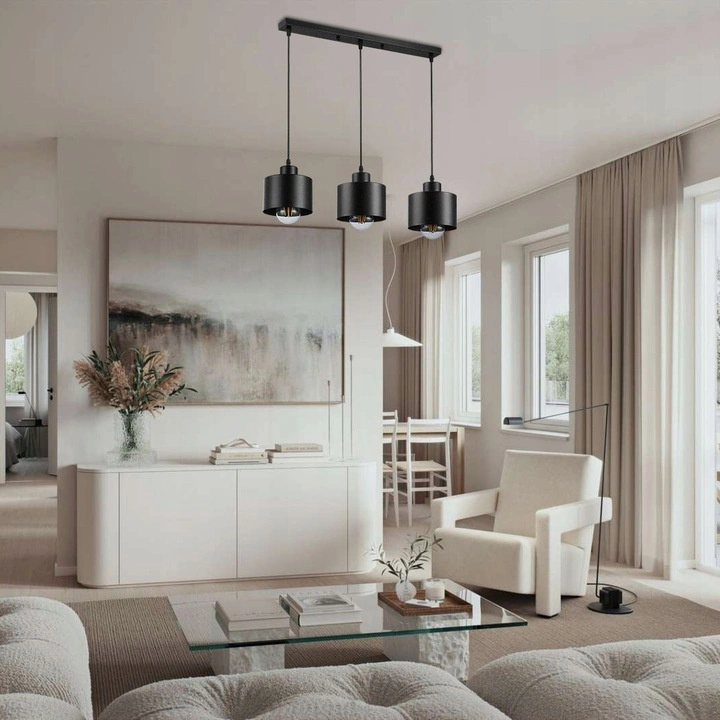 Entdecken Sie Eleganz und Funktionalität mit unserer modernen 3x E27 Black Elza Masterled Pendel-Deckenleuchte. Ideal für jedes Interieur, vom Wohnzimmer bis zum Esszimmer, wird diese stilvolle Lampe eine warme und angenehme Atmosphäre in Ihr Zuhause bringen. Dank der drei Lichtpunkte und der austauschbaren Leuchtmittel mit E27-Fassung können Sie die Beleuchtung an Ihre Bedürfnisse anpassen. Ihre schwarze Stahloberfläche ist ein Synonym für zeitlose Klassiker, die mit jedem Einrichtungsstil harmonieren.