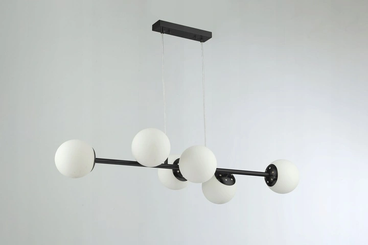 Mit bis zu sechs Lichtpunkten ist die Leuchte ideal für größere Räume und sorgt für eine gleichmäßige und effektive Beleuchtung im gesamten Raum. Die Kombination der schwarzen Farbe mit den milchigen Schirmen verleiht der Leuchte einen modernen und prestigeträchtigen Charakter, der den Einrichtungsstil unterstreicht und eine elegante Atmosphäre schafft.