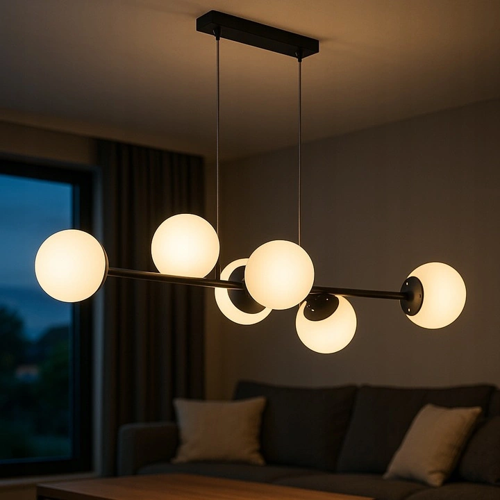 Entdecken Sie die moderne Eleganz unserer Bali 6x E27 Black Pendel-Deckenleuchte von Masterled. Entworfen für die anspruchsvollsten Innenräume, ist diese Lampe die perfekte Wahl für jedes Wohnzimmer, Küche, Schlafzimmer oder Esszimmer. Aus hochwertigem Metall und Glas gefertigt, sieht sie äußerst stilvoll aus und verleiht Ihrem Interieur einen unverwechselbaren Touch. Das schwarze Gehäuse und das milchige Glas bilden eine harmonische Komposition, die den Blick jedes Besuchers auf sich zieht.