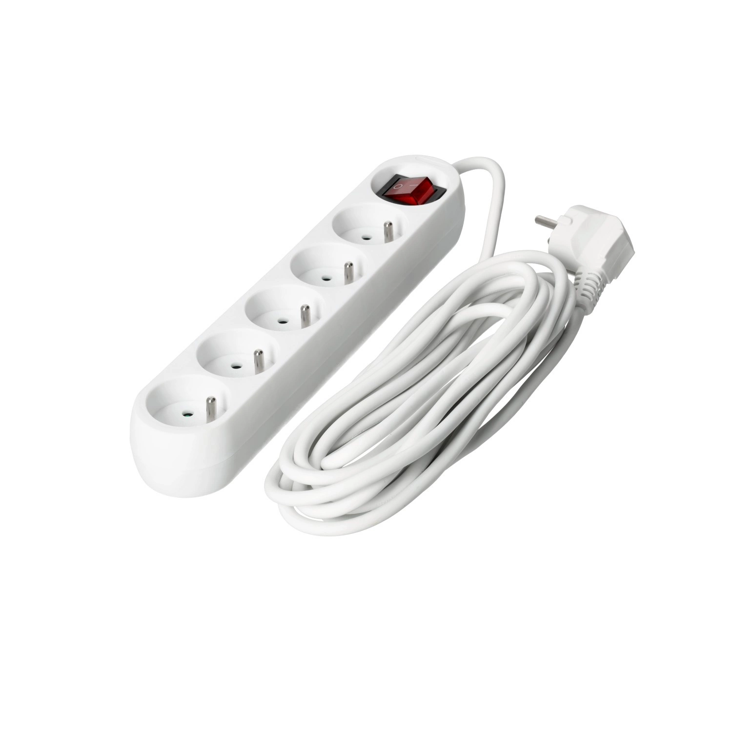 Netzverlängerungskabel 5x geerdete Steckdose Steckdosenleiste Ein/Aus Schalter 5m Weiß Linea Kobi